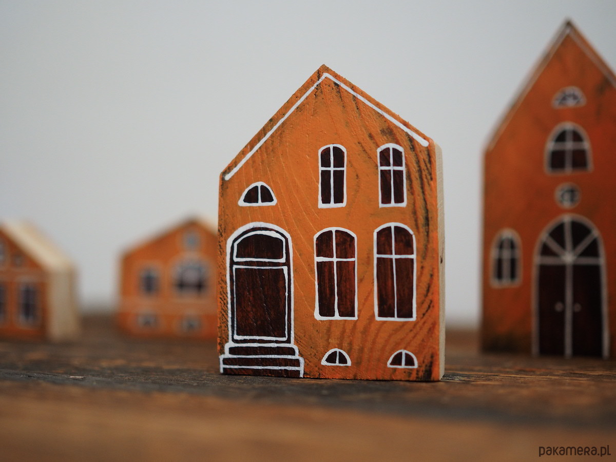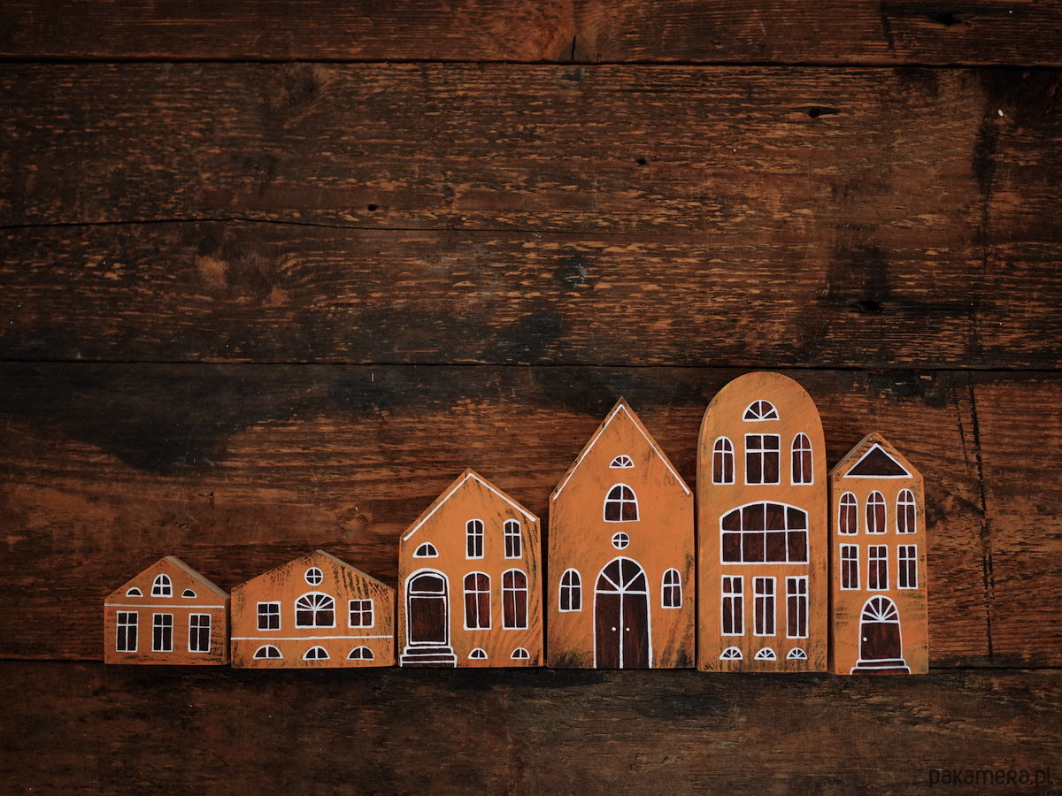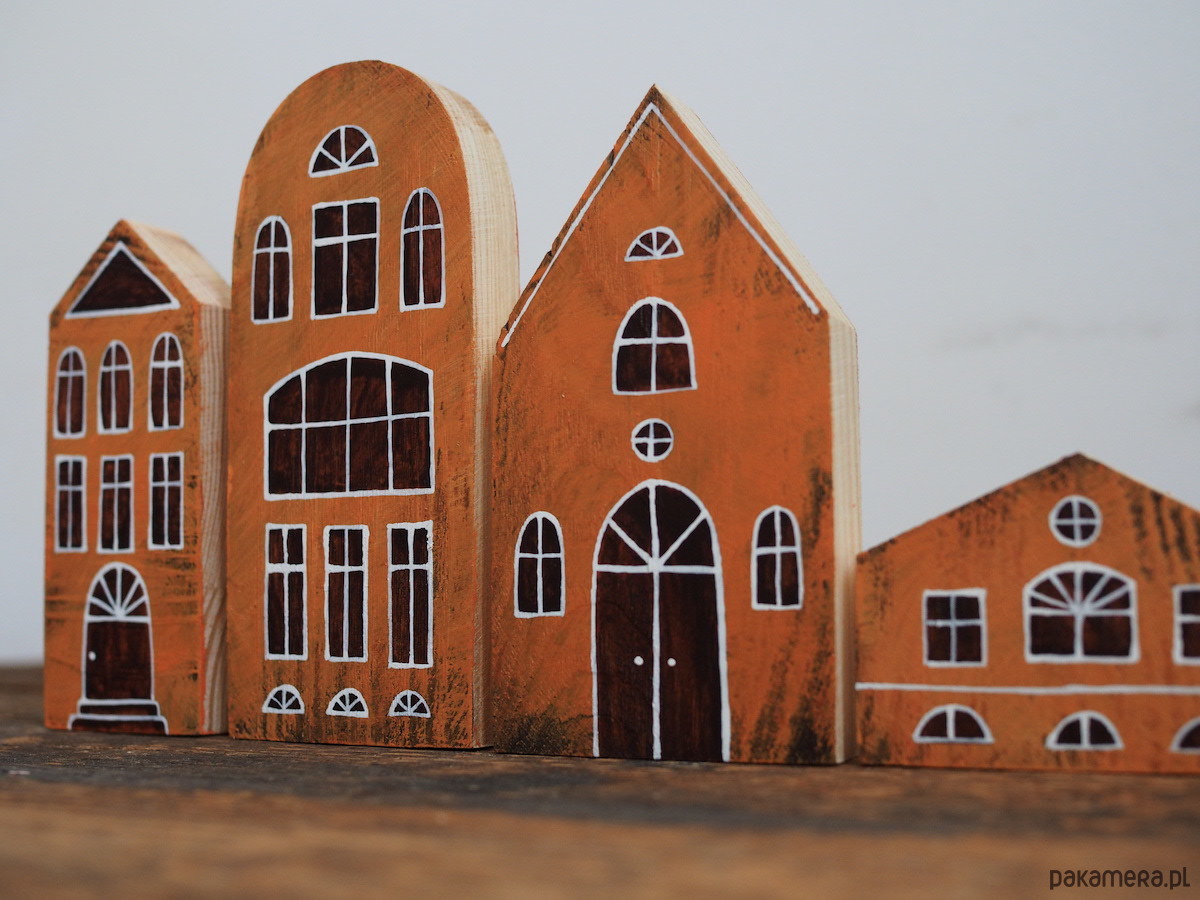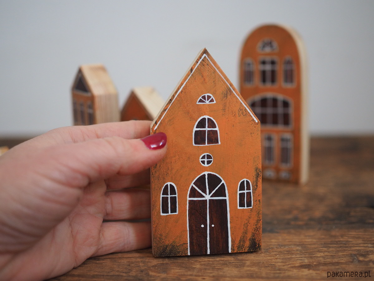 Komplet 6 szt - drewniane domki ręcznie malowane