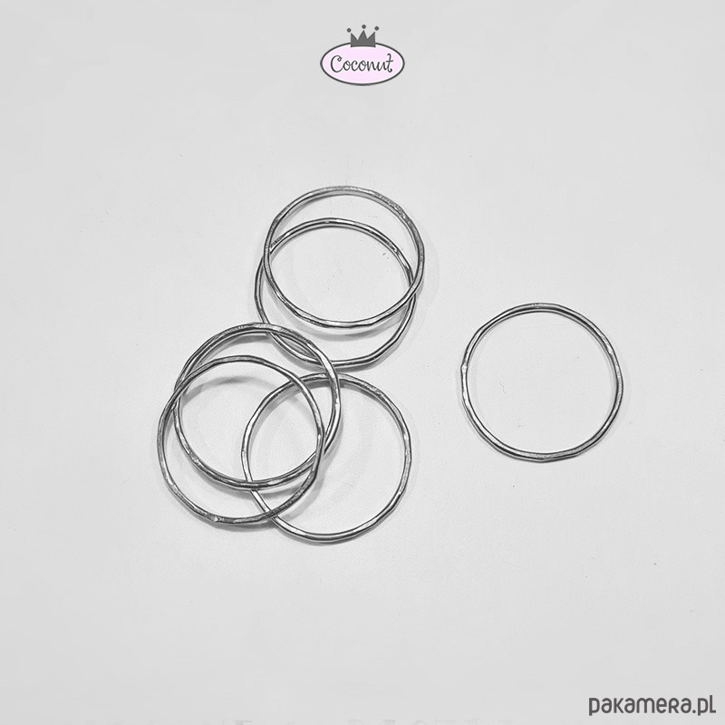 Komplet: siedem cienkich obrączek ze srebra 925, o szerokości ok. 1 mm, obrączki mają nierówną fakturę - są młotkowane.