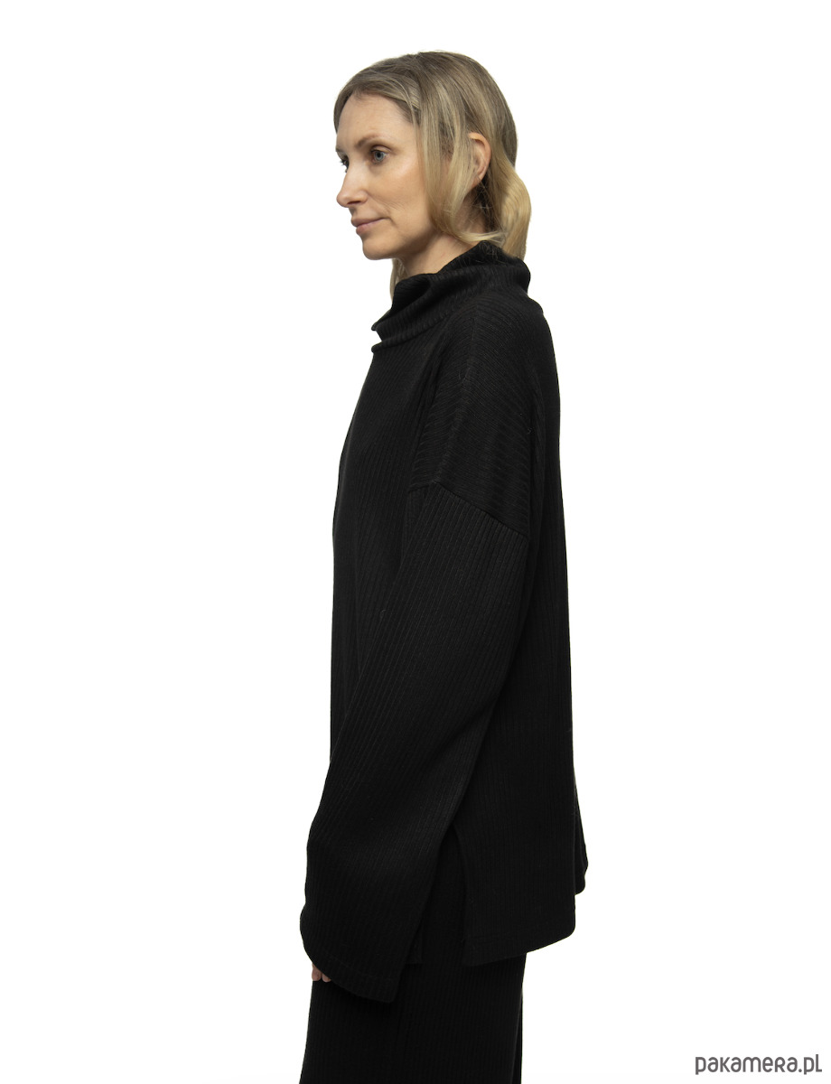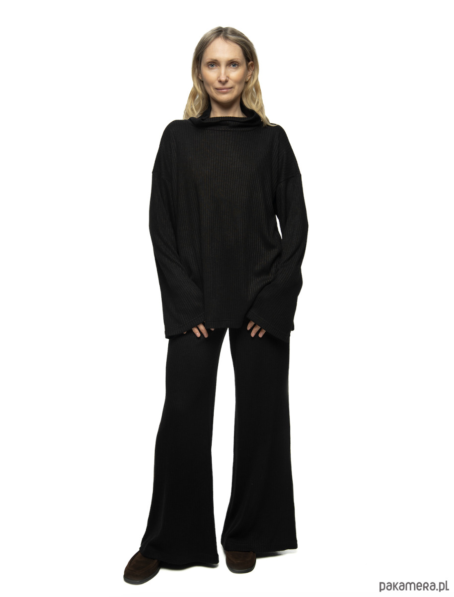 Wykonany z miękkiej, przyjemnej w dotyku dzianiny, zapewnia maksymalny komfort noszenia przez cały dzień. Luźna bluza z wysokim golfem oraz szerokie spodnie tworzą nowoczesny, oversize’owy look, który pasuje na wiele okazji.