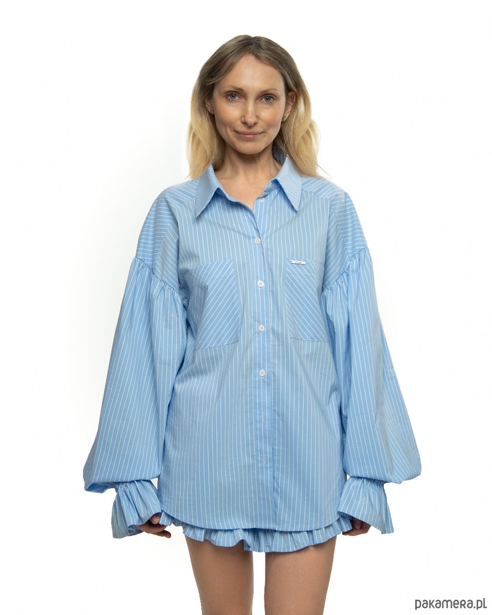 Komplet bawełniany „Luna & Candy” w niebieskim kolorze to połączenie stylu, wygody co więcej kobiecej lekkości. W skład zestawu wchodzi oversize’owa koszula „Luna” oraz krótkie szorty „Candy”. Oba elementy uszyto z bawełny – miękkiej, przewiewnej i przyjaznej dla skóry.