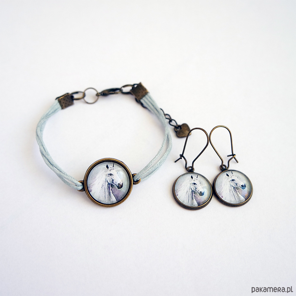 Komplet - Biały koń - kolczyki, bransoletka