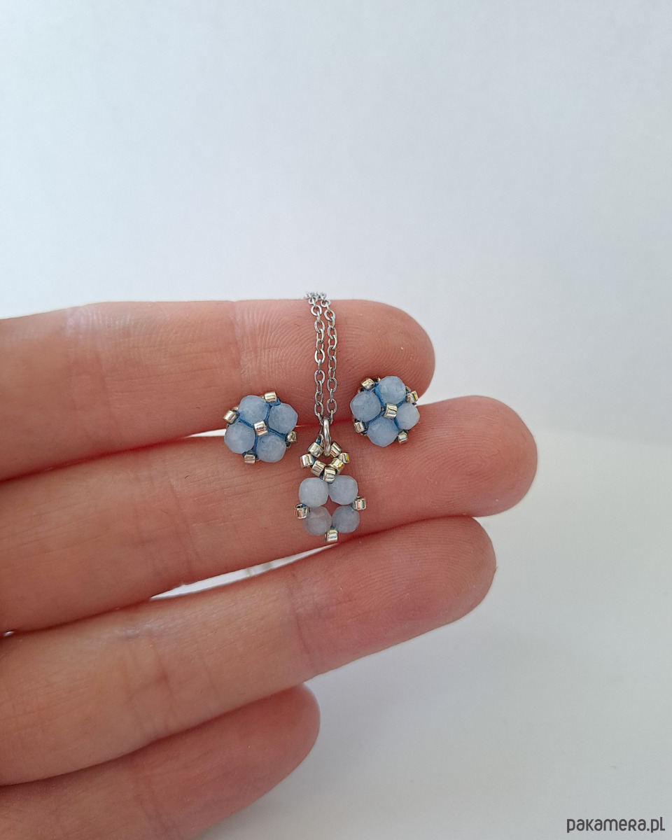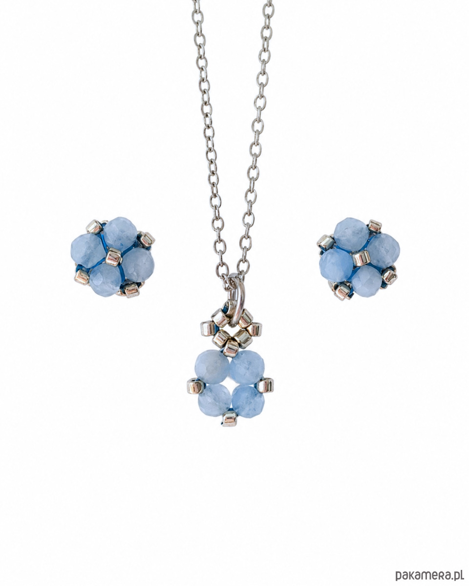 Delikatny komplet z akwamarynu to połączenie minimalistycznych sztyftów i pasującego naszyjnika, które razem tworzą spójną, harmonijną całość. Subtelny odcień błękitu oraz srebrne detale nadają biżuterii świeży, spokojny charakter. To zestaw, który doskonale sprawdzi się zarówno na co dzień, jak i jako elegancki, nienachalny akcent do bardziej wyjątkowych stylizacji.