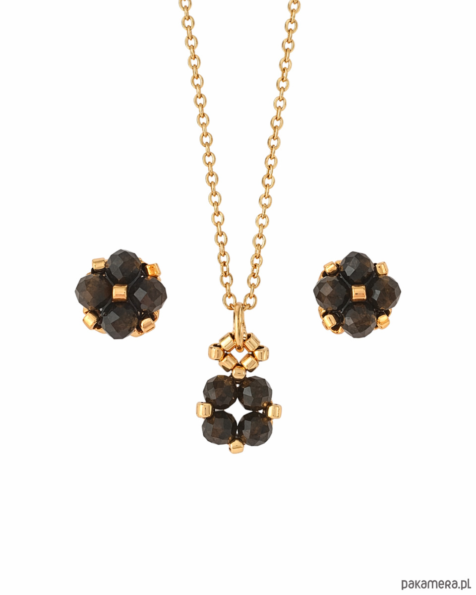 Komplet Biżuterii Obsydian Złocisty - Kolczyki Sztyfty i Naszyjnik