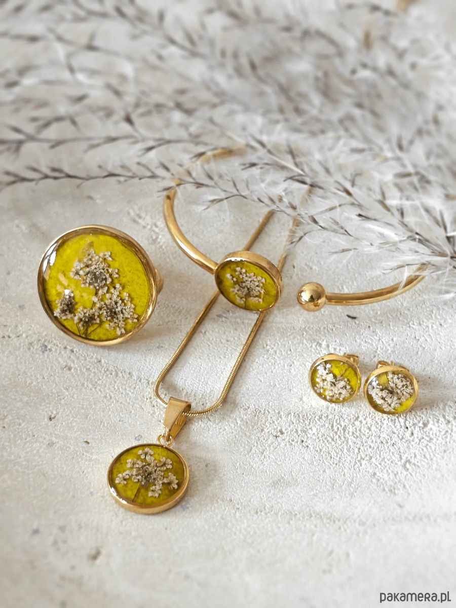 Komplet biżuterii z kwiatami dzikiej marchwi