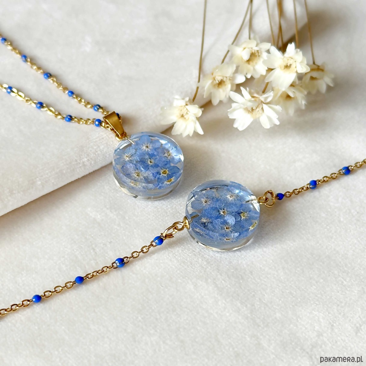Komplet biżuterii z niezapominajkami