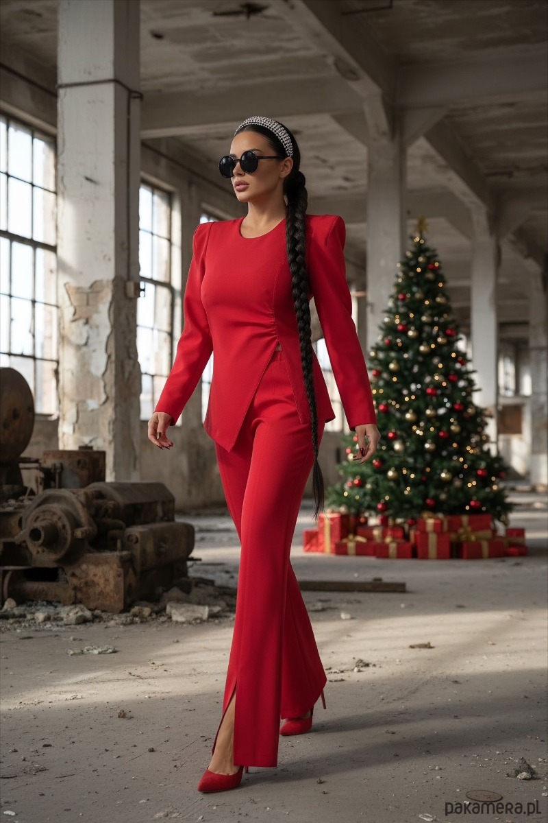 - Skład kompletu: marynarka + spodnie, bluza + spodnie, góra + dół