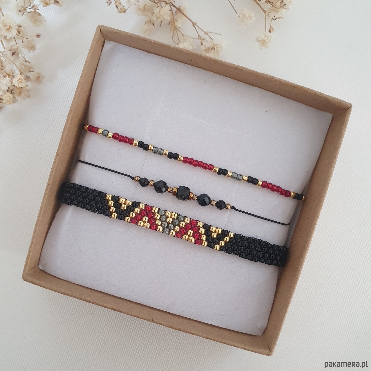 Bransoletki pakujemy w ozdobne pudełeczko.