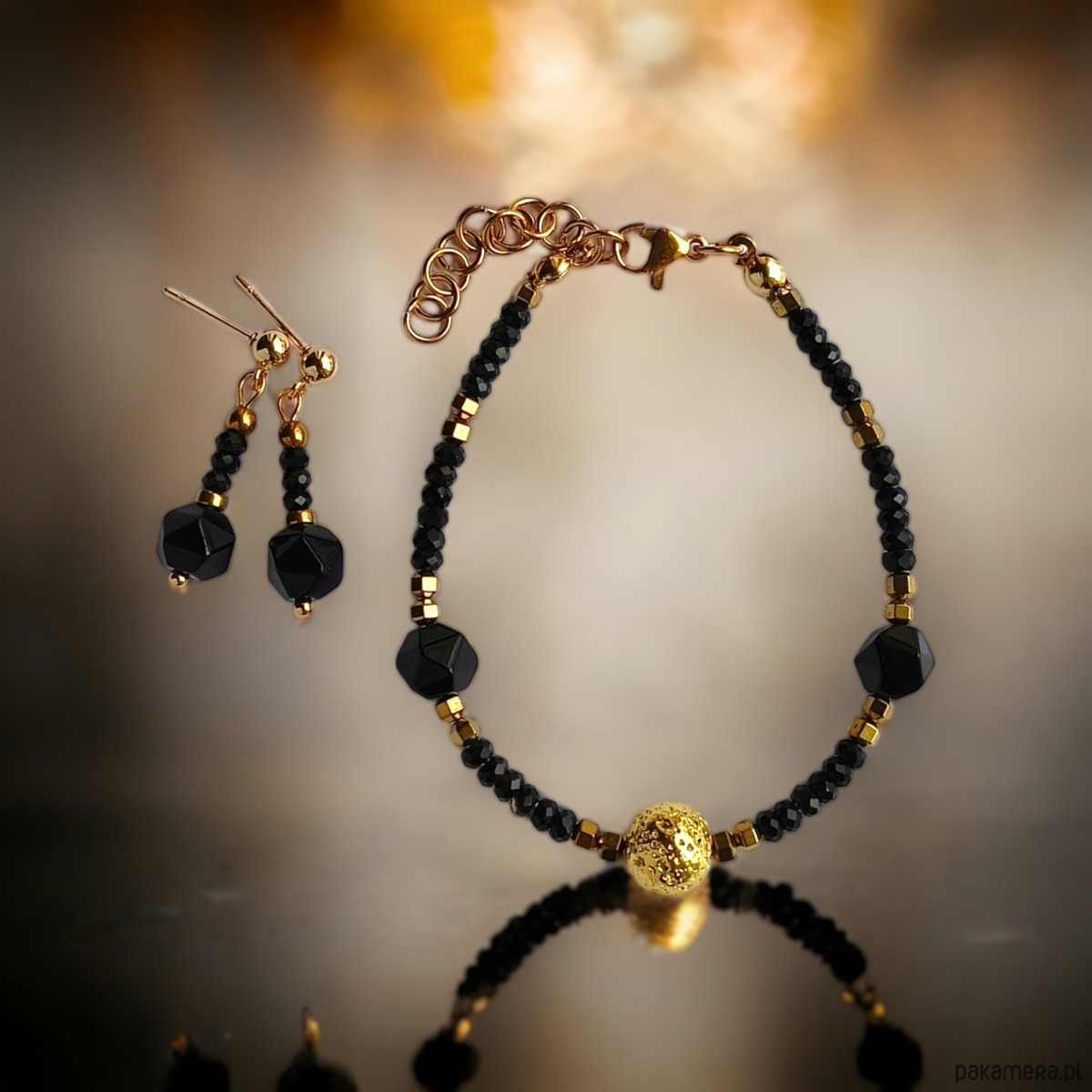 KOMPLET bransoletka i kolczyki GLAM :: komplet czarno-złoty