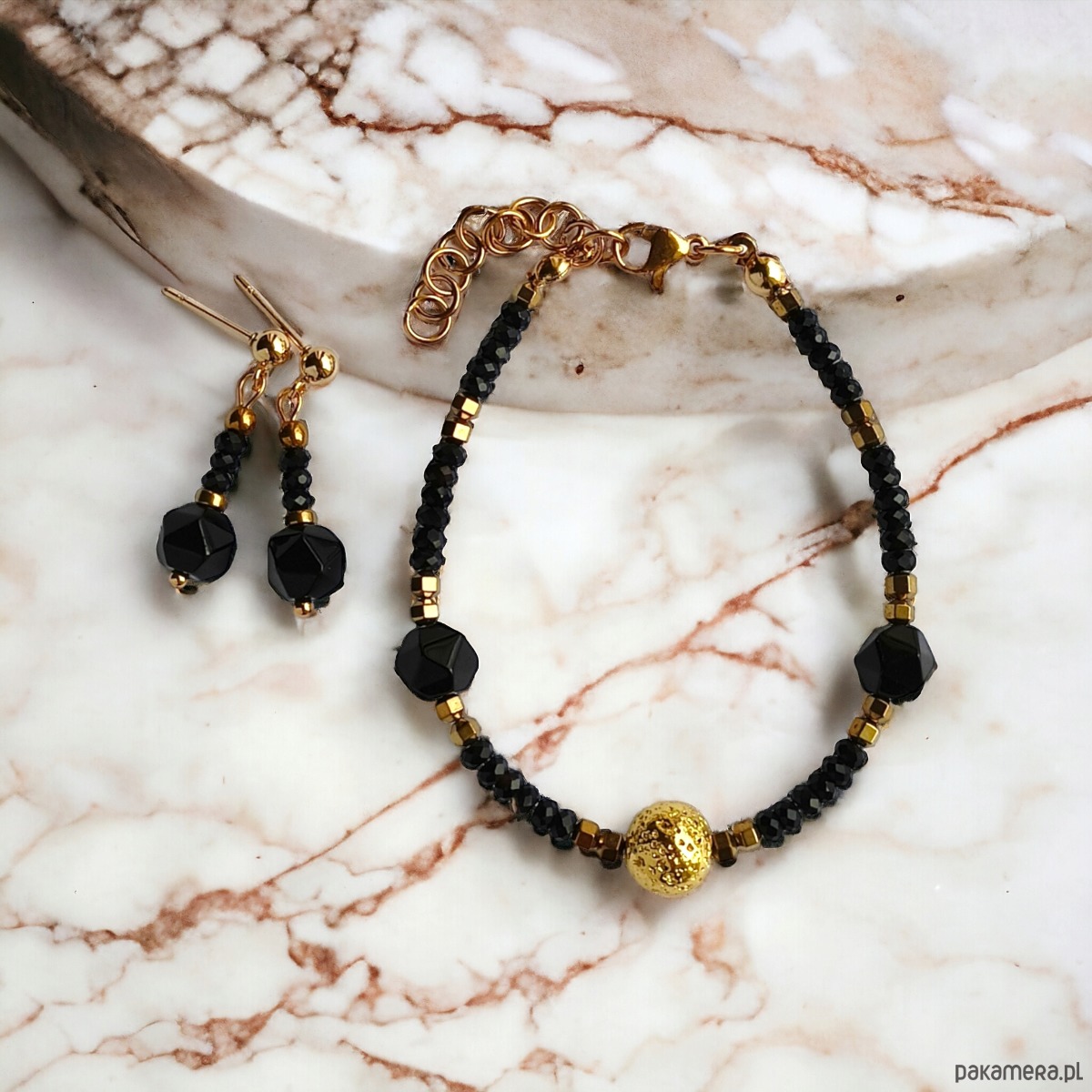 KOMPLET bransoletka i kolczyki GLAM : komplet czarno-złoty