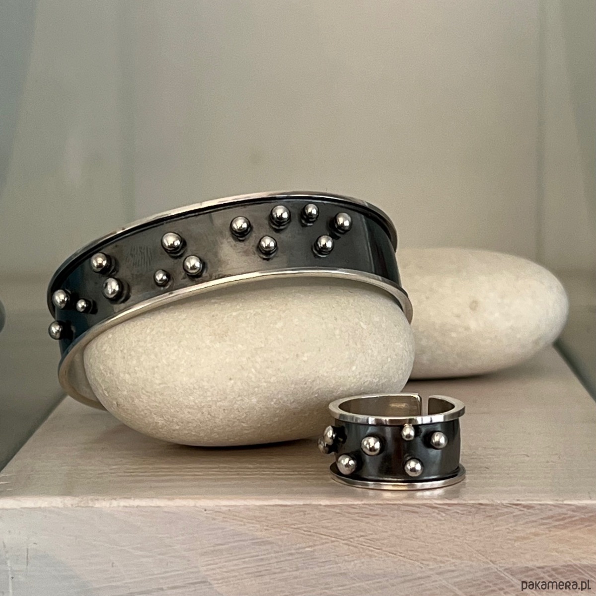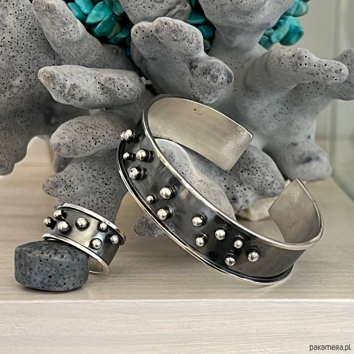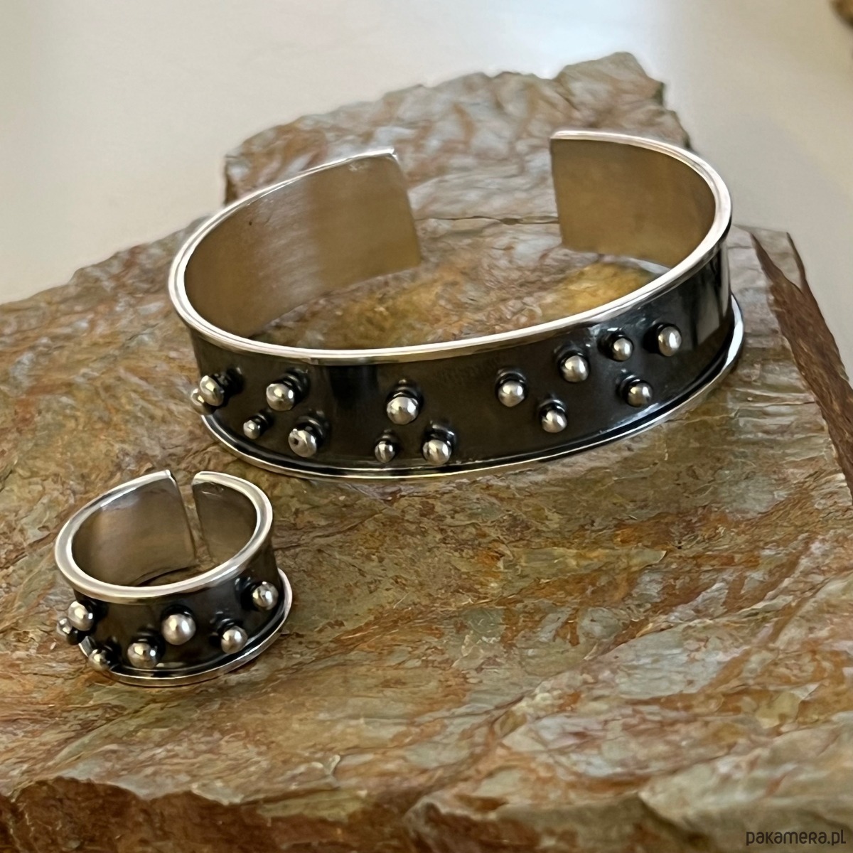 Komplet - Bransoletka i obraczka oksydowana z kuleczkami
