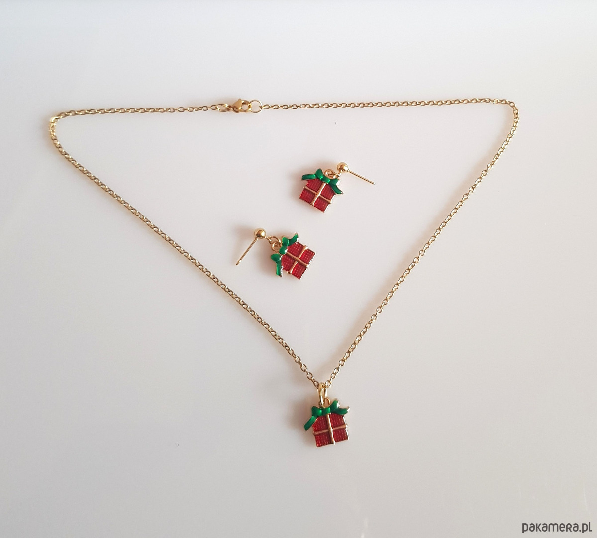 Łańcuszek ( długość 40 cm ) i sztyfty do ucha wykonane z platerowanej złotem stali szlachetnej.