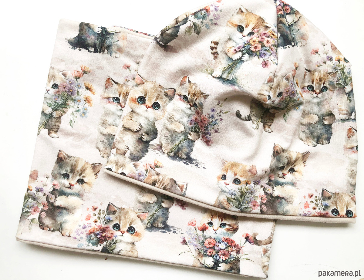 Komplet _ czapka BEANIE i komin _ KOTKI