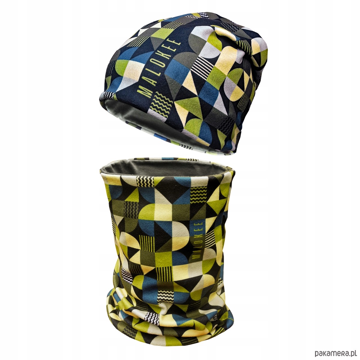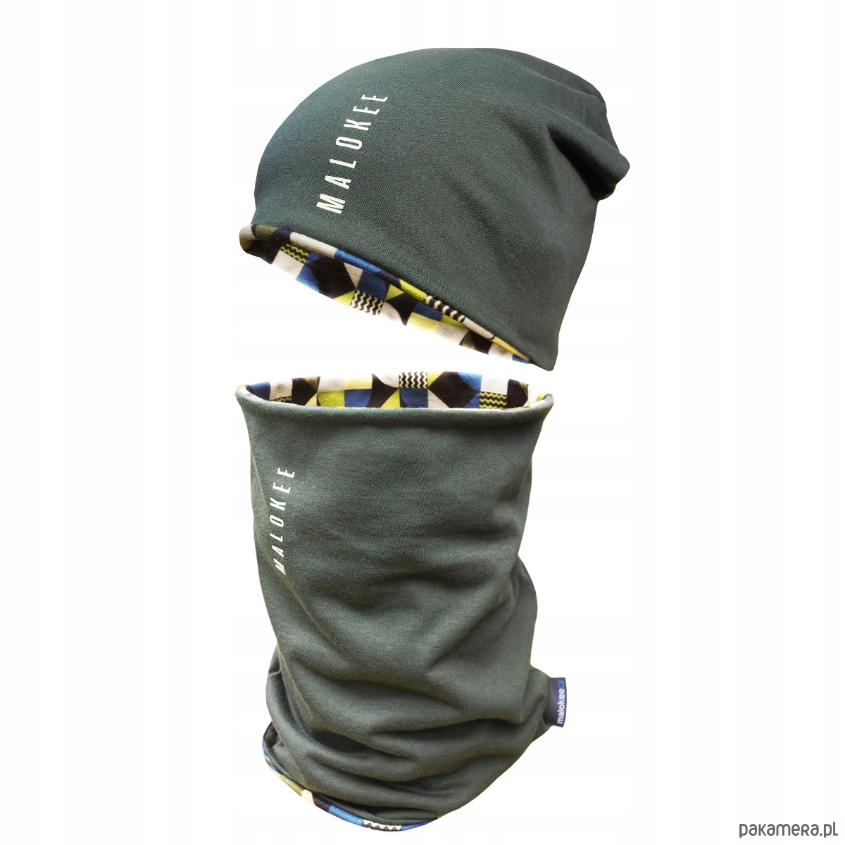 Komplet czapka i komin uniwersalny zimowy dwustronny termoaktywny bawełna