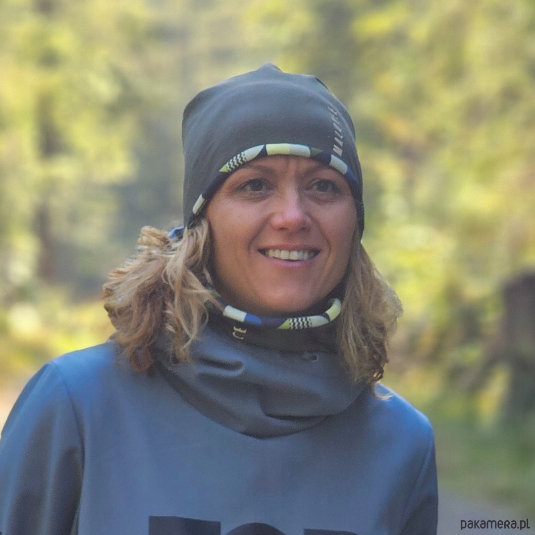 W dwustronnej polarowo-bawełnianej czapce i kominie będzie Ci ciepło i wygodnie. To produkty termoaktywne, które dobrze chronią od zimna i sprawnie oddychają. Czapka nie zsuwa się i mocno trzyma głowy, nawet jeśli wykonujesz niezwykłe akrobacje, dotrzyma Ci kroku.