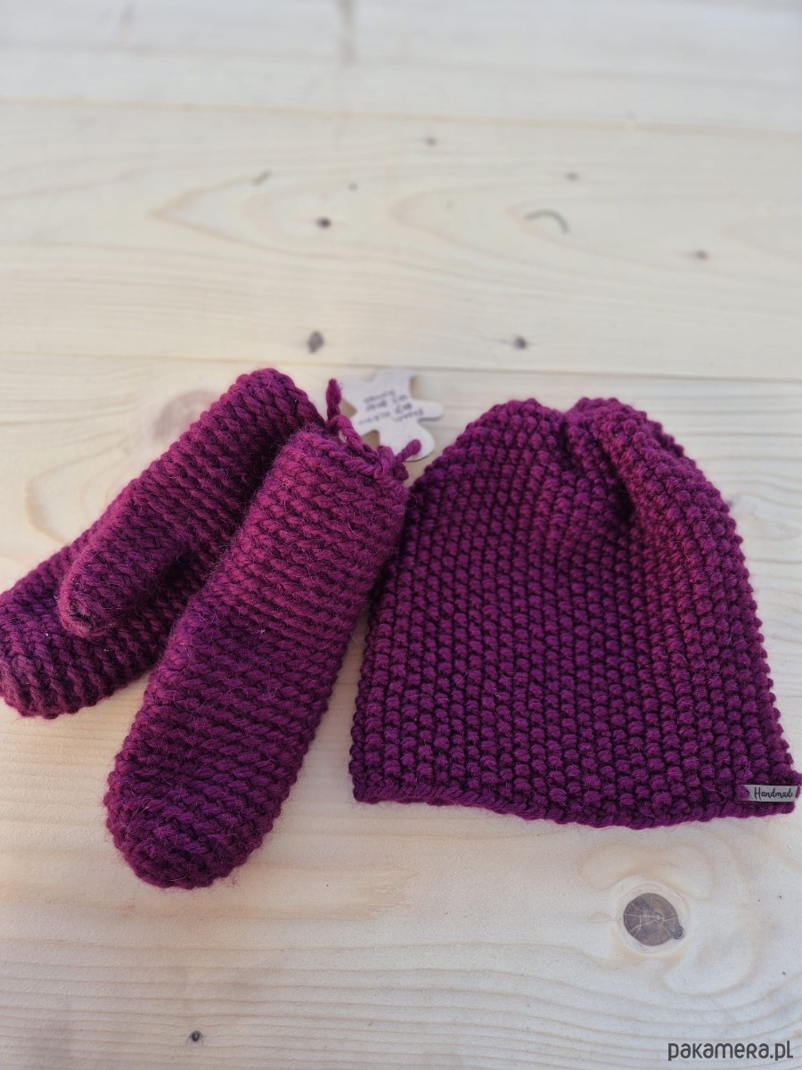Czapka i rekawiczki wykonane ręcznie z wloczki baby alpaka i merino. Prezentuja sie pieknie i sa mięciutkie.