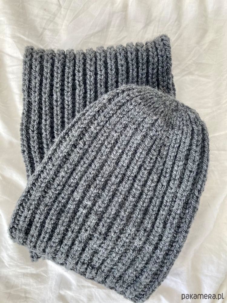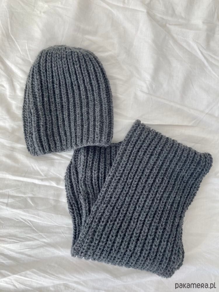 Idealny na zimę komplet z miękkiego akrylu w pięknym szarym kolorze.