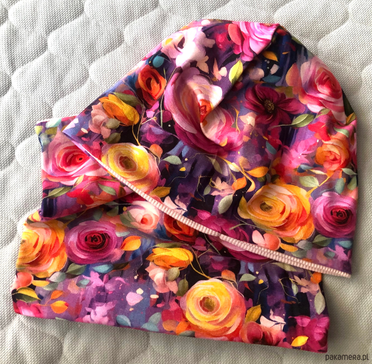 KOMPLET _ czapka + komin w kolorowe kwiaty