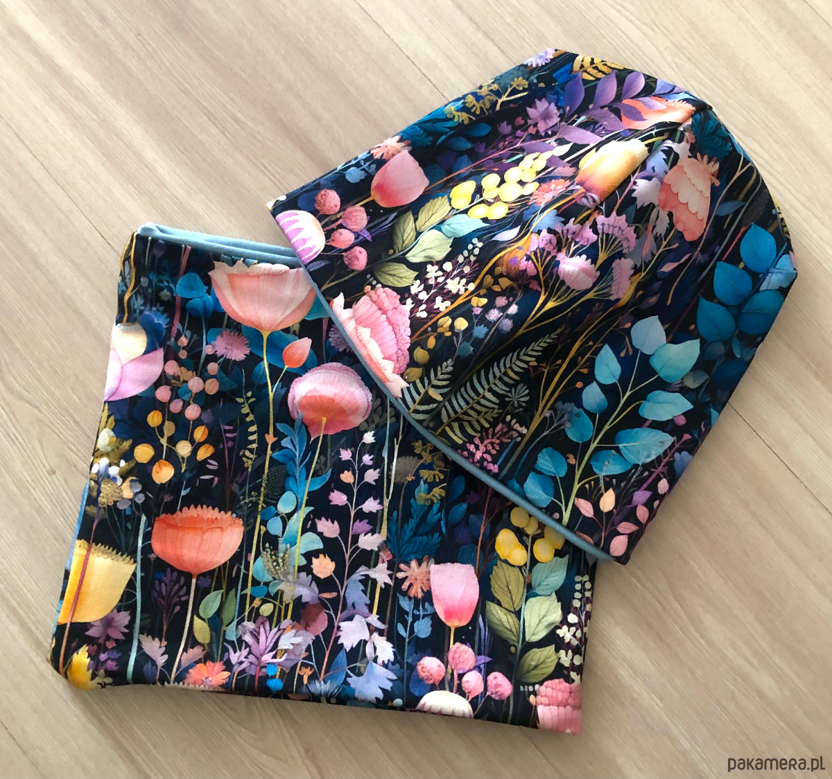 CZAPKA BEANIE + komin w kwiaty