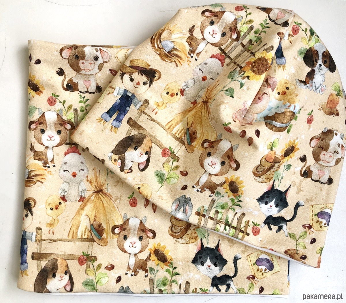KOMPLET _ czapka + komin w zwierzątka na farmie