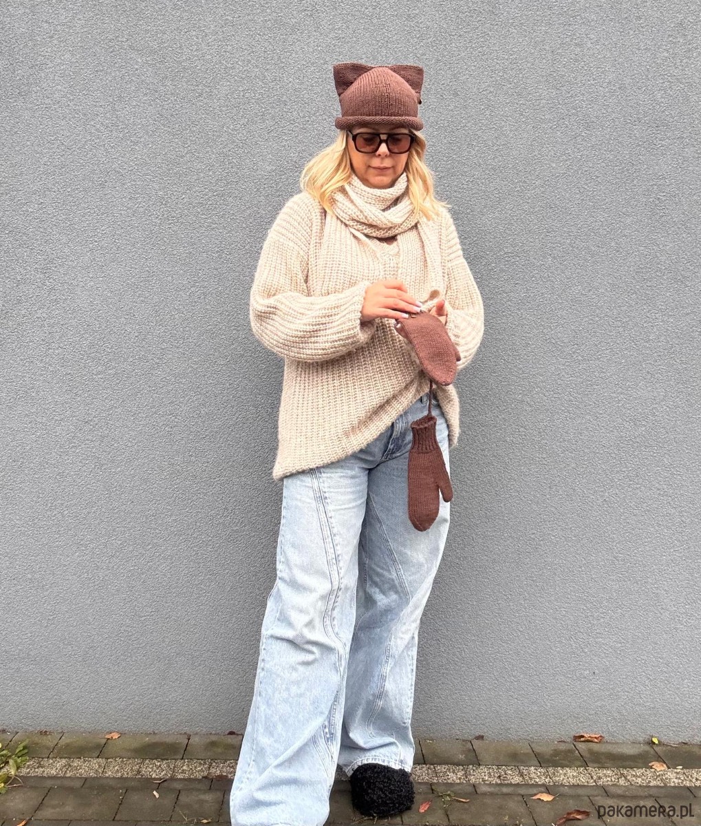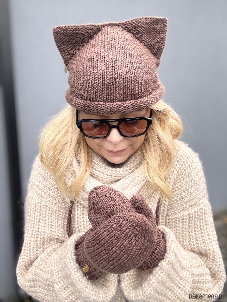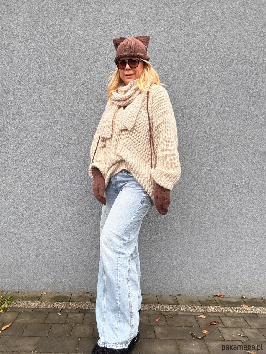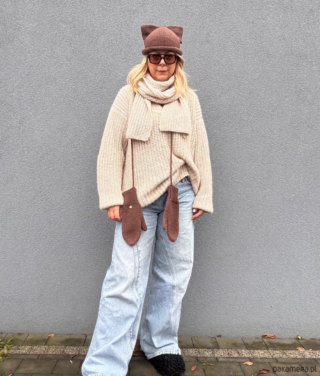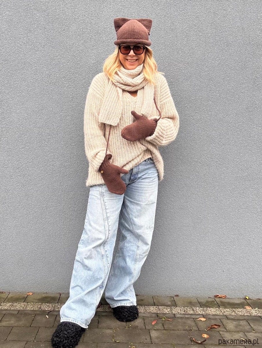Czapka z uszkami à la kotek i rękawiczki na sznurku – brzmi dziecięco? Tylko do momentu, aż zestawisz je z oversize swetrem, miękkim szalem i luźnymi jeansami. Efekt? Stylówka, która łączy luz, wygodę i odrobinę humoru 🐱✨