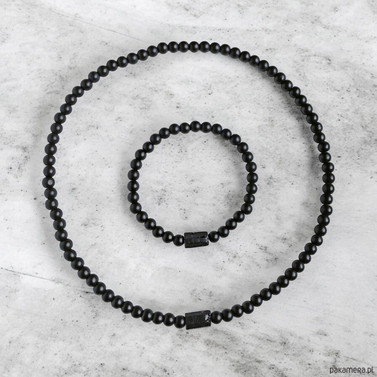 KOMPLET : czarny turmalin & onyks mat : NASZYJNIK & BRANSOLETKA