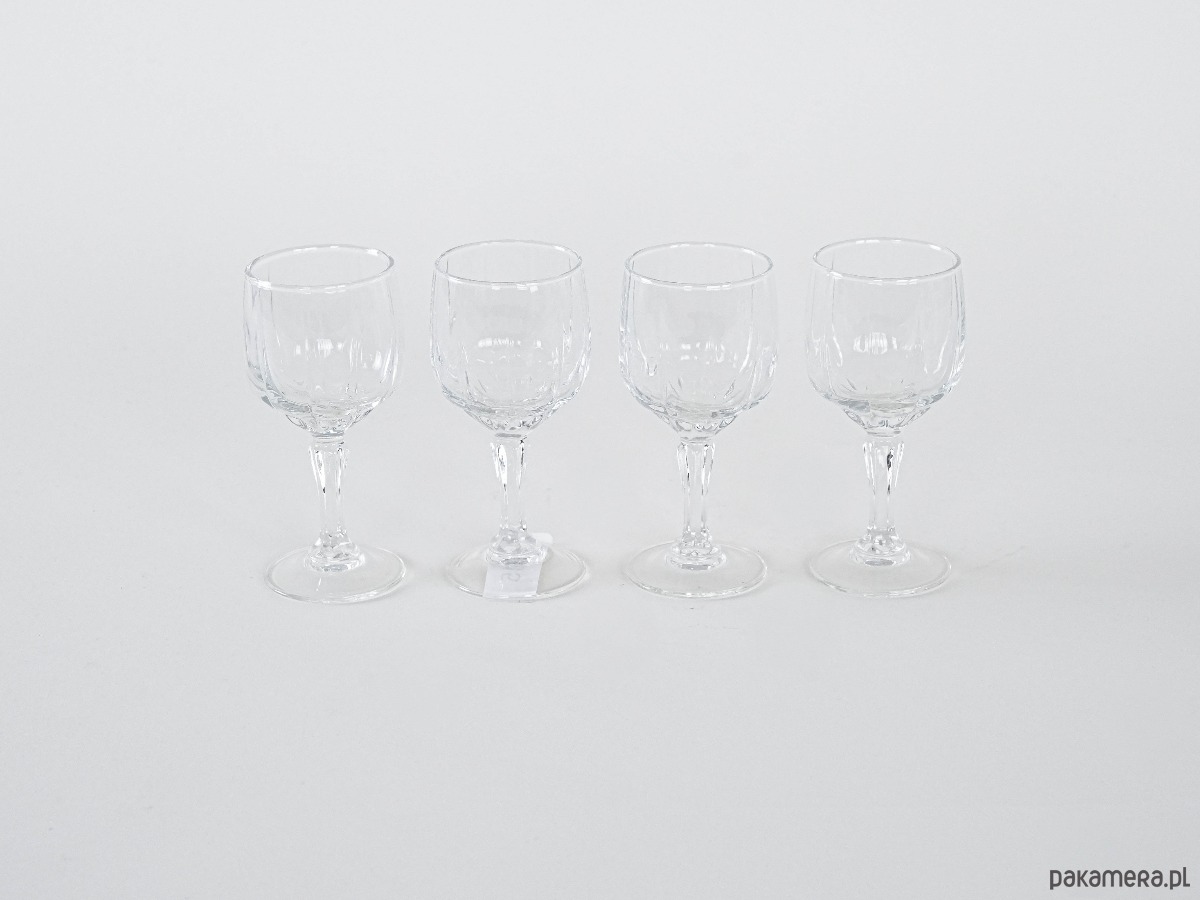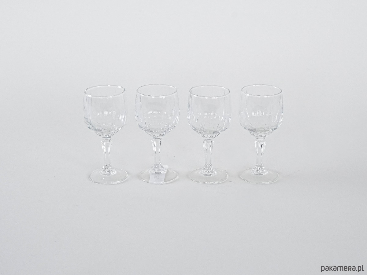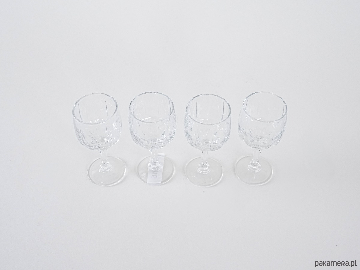 Kieliszki kryształowe vintage, komplet 4 sztuki. Klasyczna forma z dekoracyjną czaszą i elegancką nóżką, idealne do serwowania trunków w stylowym wydaniu.