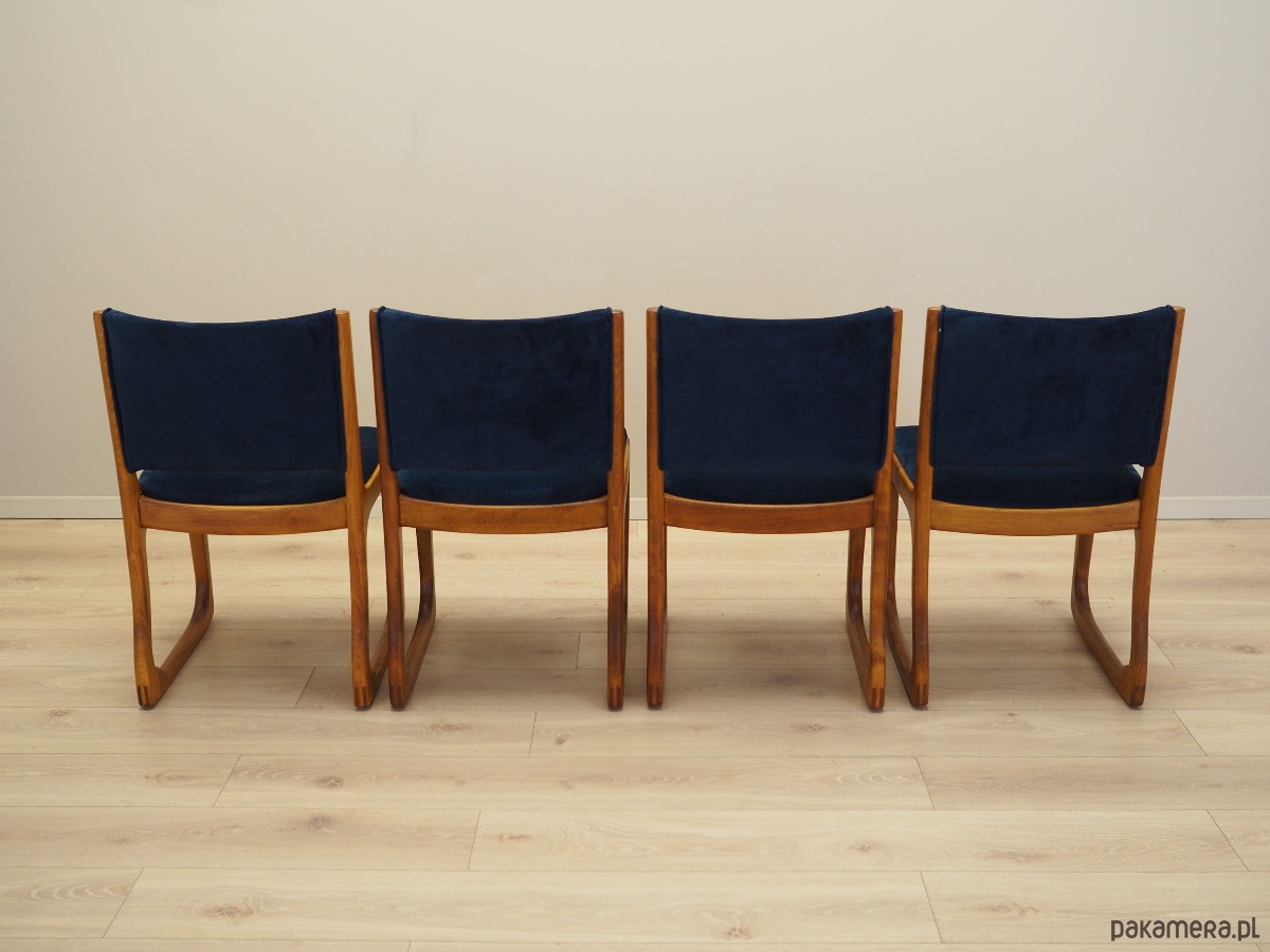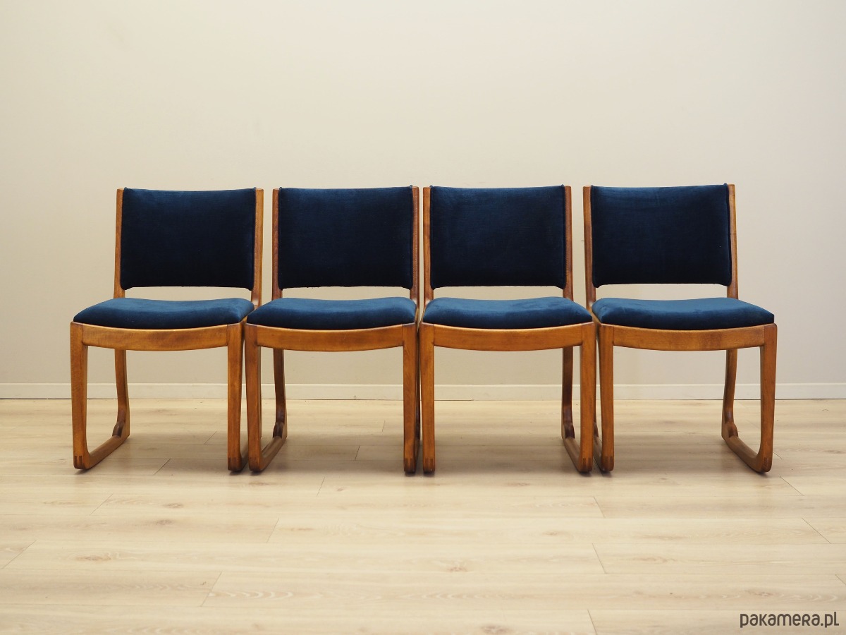 Komplet czterech krzeseł wykonanych w latach 50-tych, zaprojektowany przez znanego duńskiego projektanta Holger'a Jacobsen'a. Wyprodukowany przez duńską manufakturę Fritz Hansen.