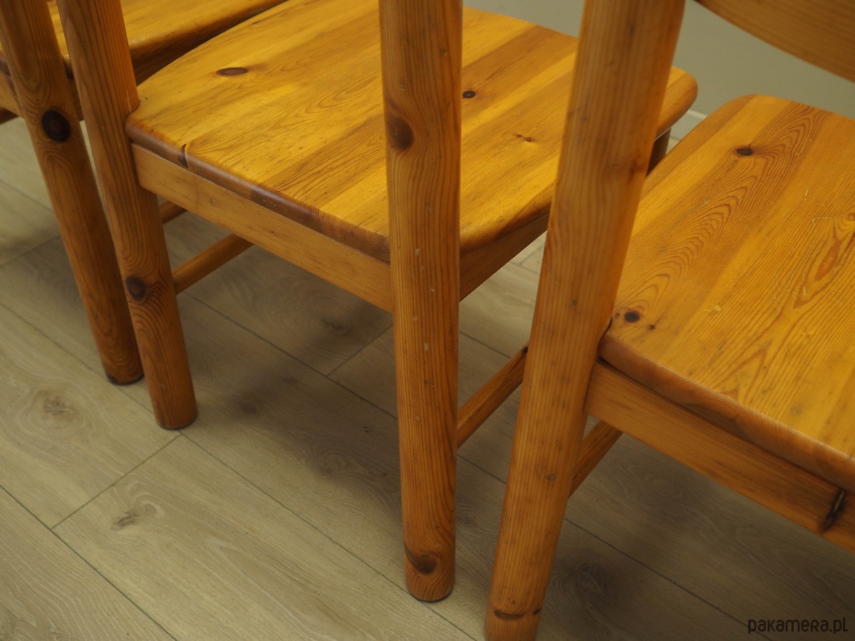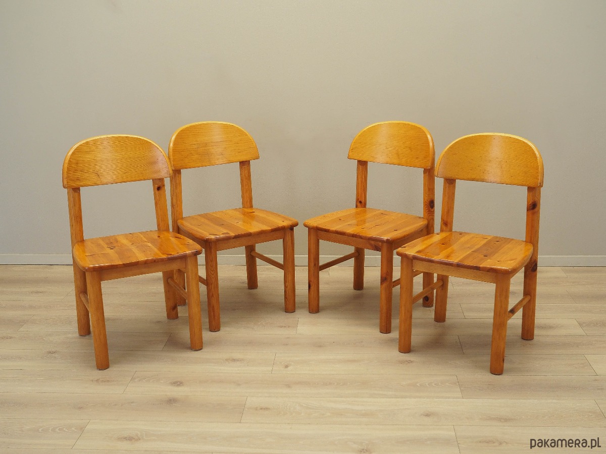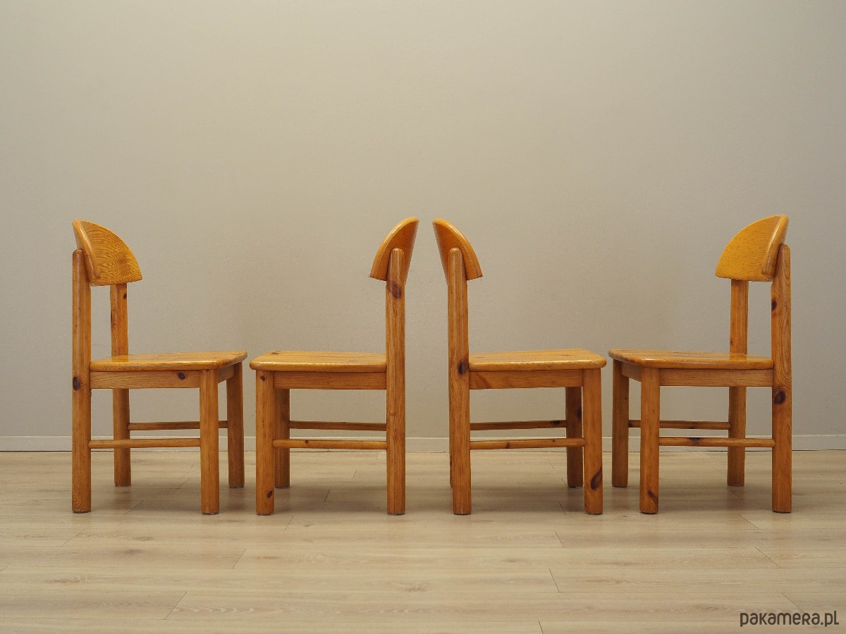 Komplet czterech krzeseł wykonany został w latach 60-tych, zaprojektowany przez znanego niemieckiego designera Rainer'a Daumiller'a dla duńskiej manufaktury Hirtshals.
