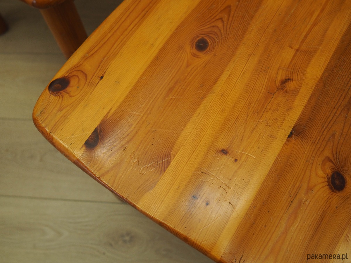 Stan: Krzesła zachowane w oryginalnym stanie. Widoczne drobne zarysowania oraz obicia. Większe ślady użytkowania zawsze przedstawiamy na zdjęciach. Produkt przygotowany bezpośrednio do użytkowania.