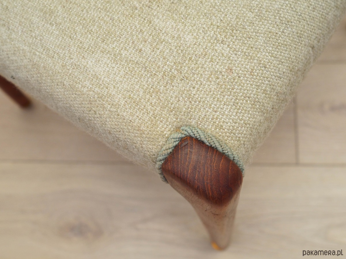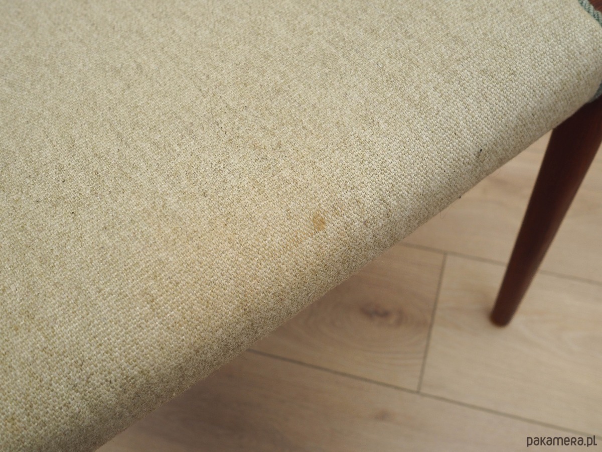 Konstrukcja wykonana jest z drewna tekowego. Drewno po odświeżeniu. Krzesła posiadają oryginalną tapicerkę. Tapicerka została wykonana w kolorze beżowym, wykorzystana została wysokiej jakości tkanina.