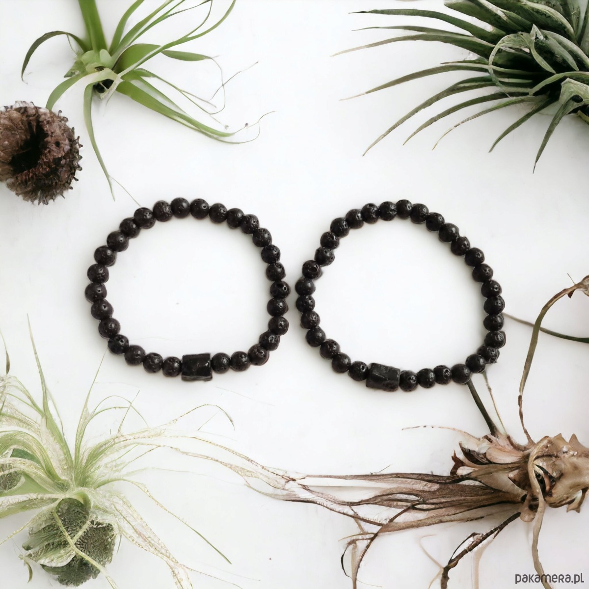 KOMPLET dla PARY - czarny turmalin i lawa - ochrona, energia