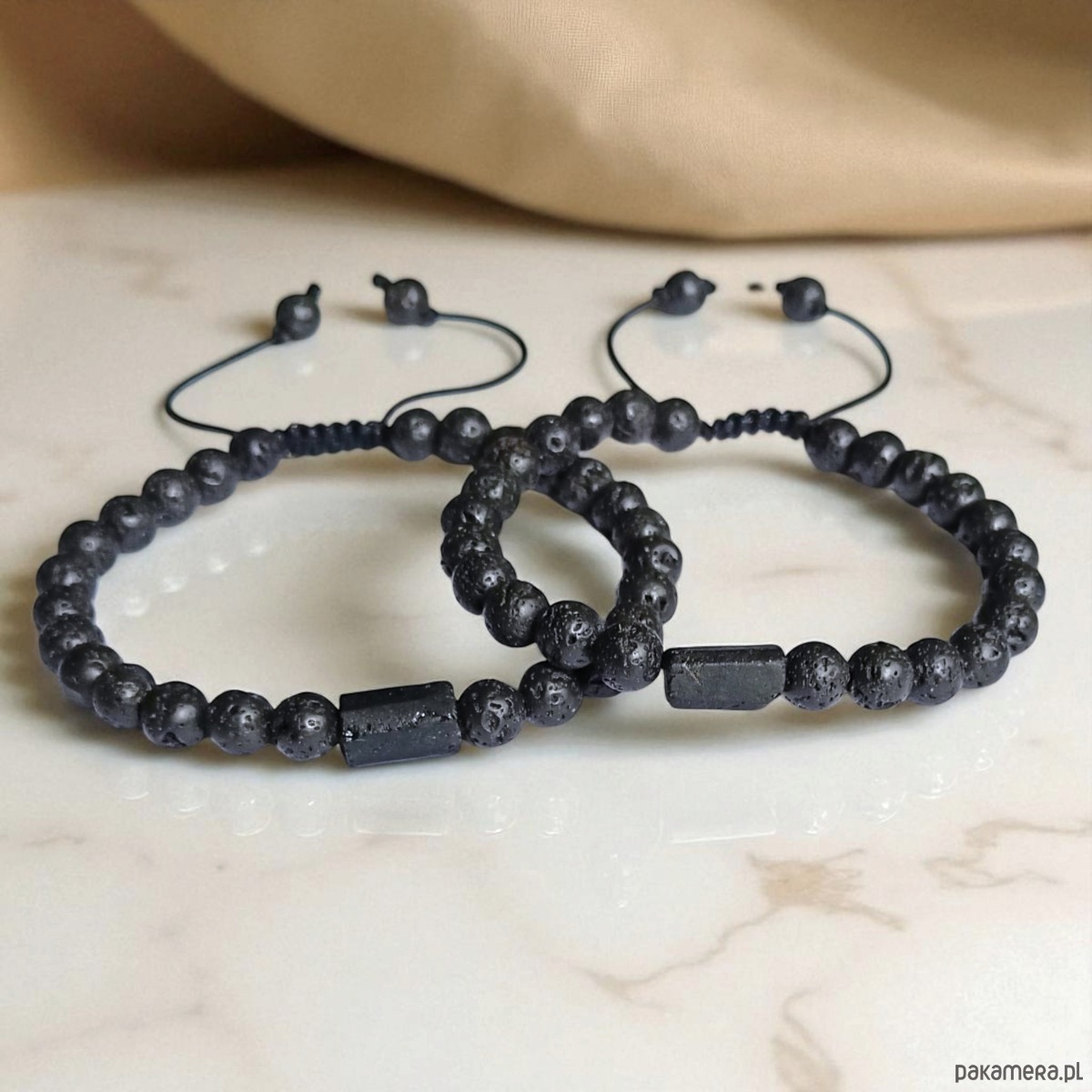 TUTAJ: 2xprosta, lecz ciekawa bransoletka wykonana z kul porowatej lawy wulkanicznej 6mm, z bryłką surowego czarnego turmalinu.