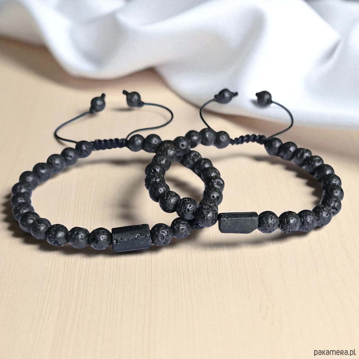 TUTAJ: 2xprosta, lecz ciekawa bransoletka wykonana z kul porowatej lawy wulkanicznej 6mm, z bryłką surowego czarnego turmalinu.