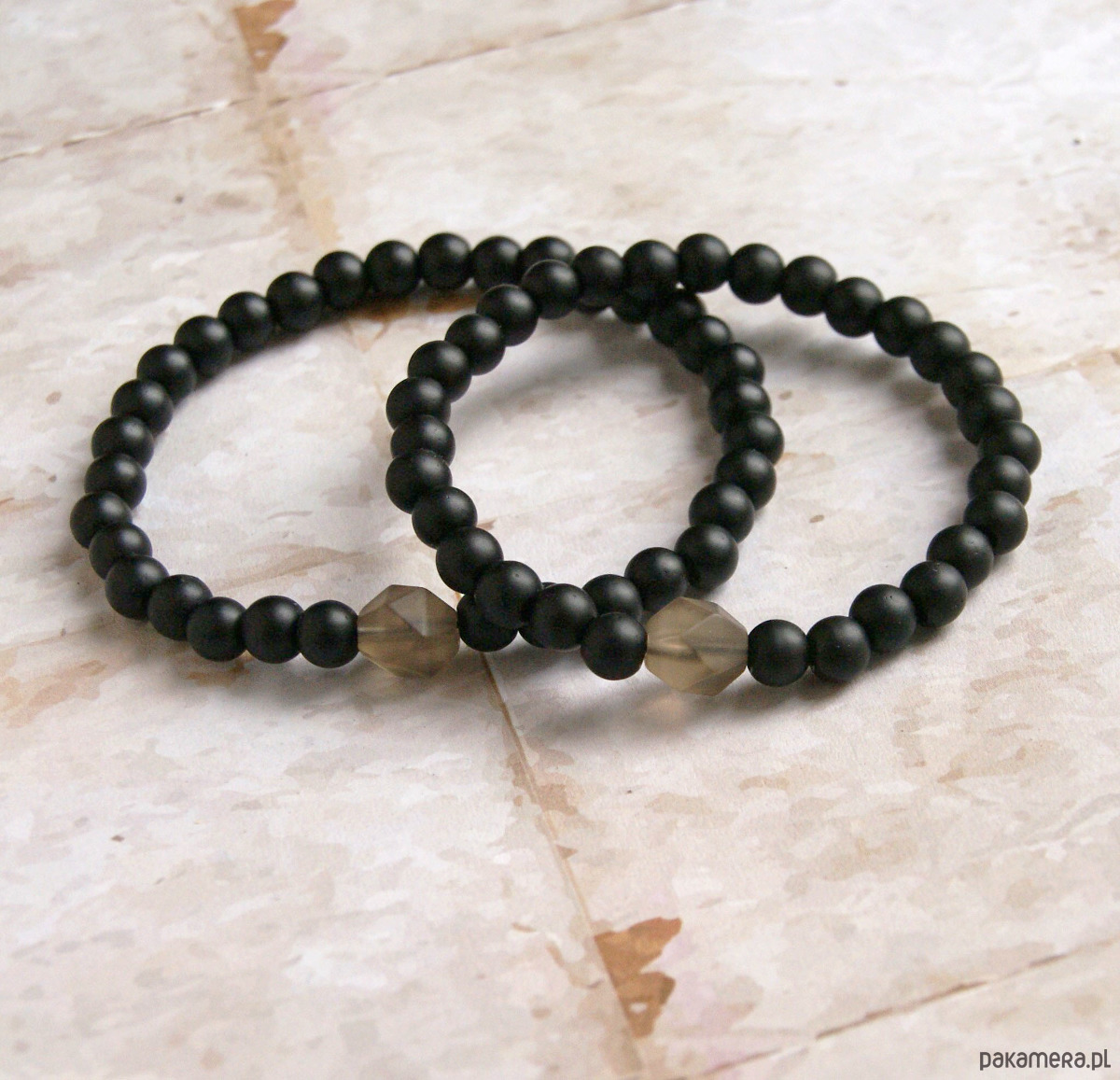 2x delikatna niezwykle ciekawa bransoletka- talizman wykonana z kuleczek matowego onyksu (6mm) oraz MATOWYCH bryłek kwarcu dymnego (szlif gwiazdkowy) -