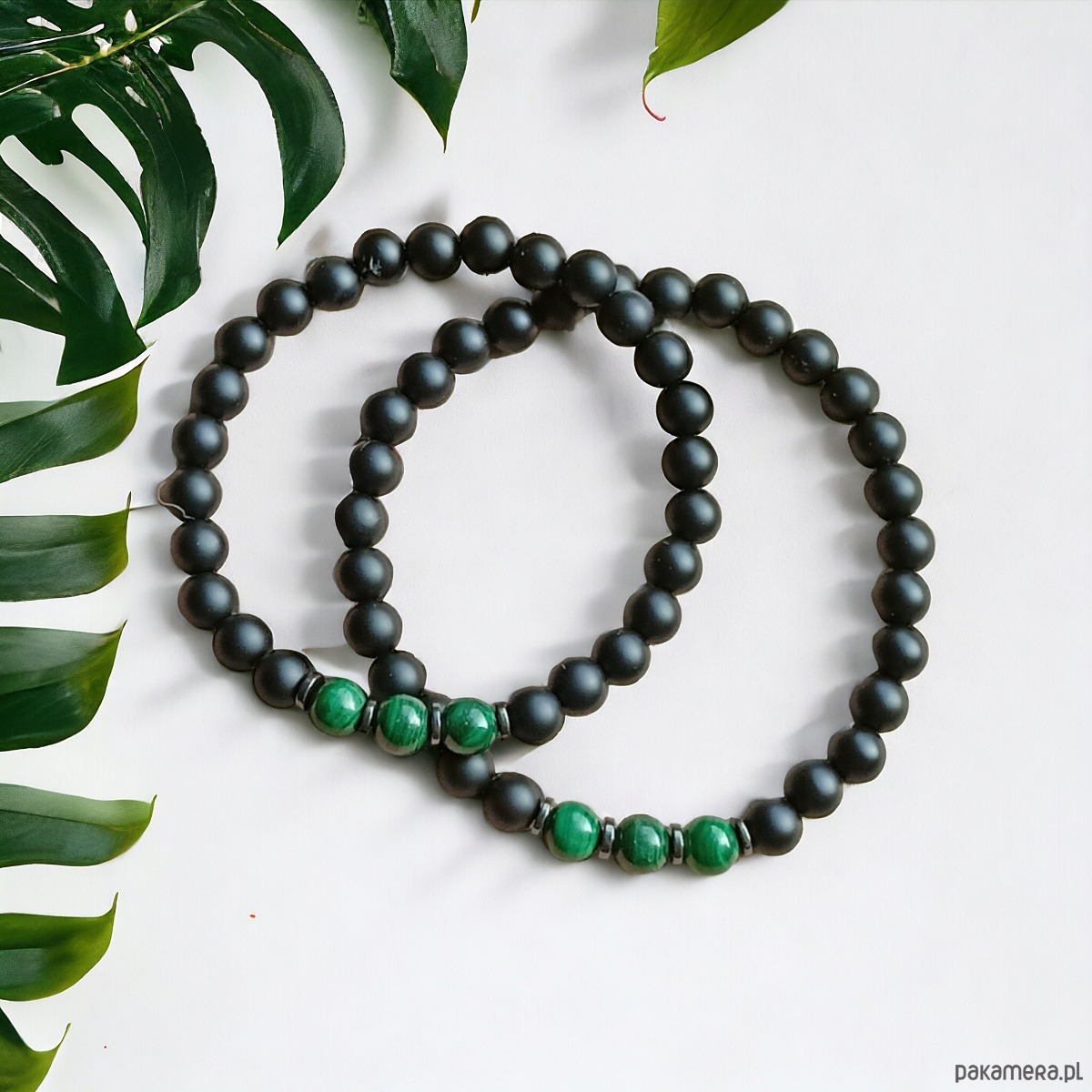 2x delikatna niezwykle ciekawa bransoletka- talizman wykonana z matowego onyksu (6mm) i naturalnego malachitu , przekładek z hematytu. BEZ ELEMENTÓW METALOWYCH.