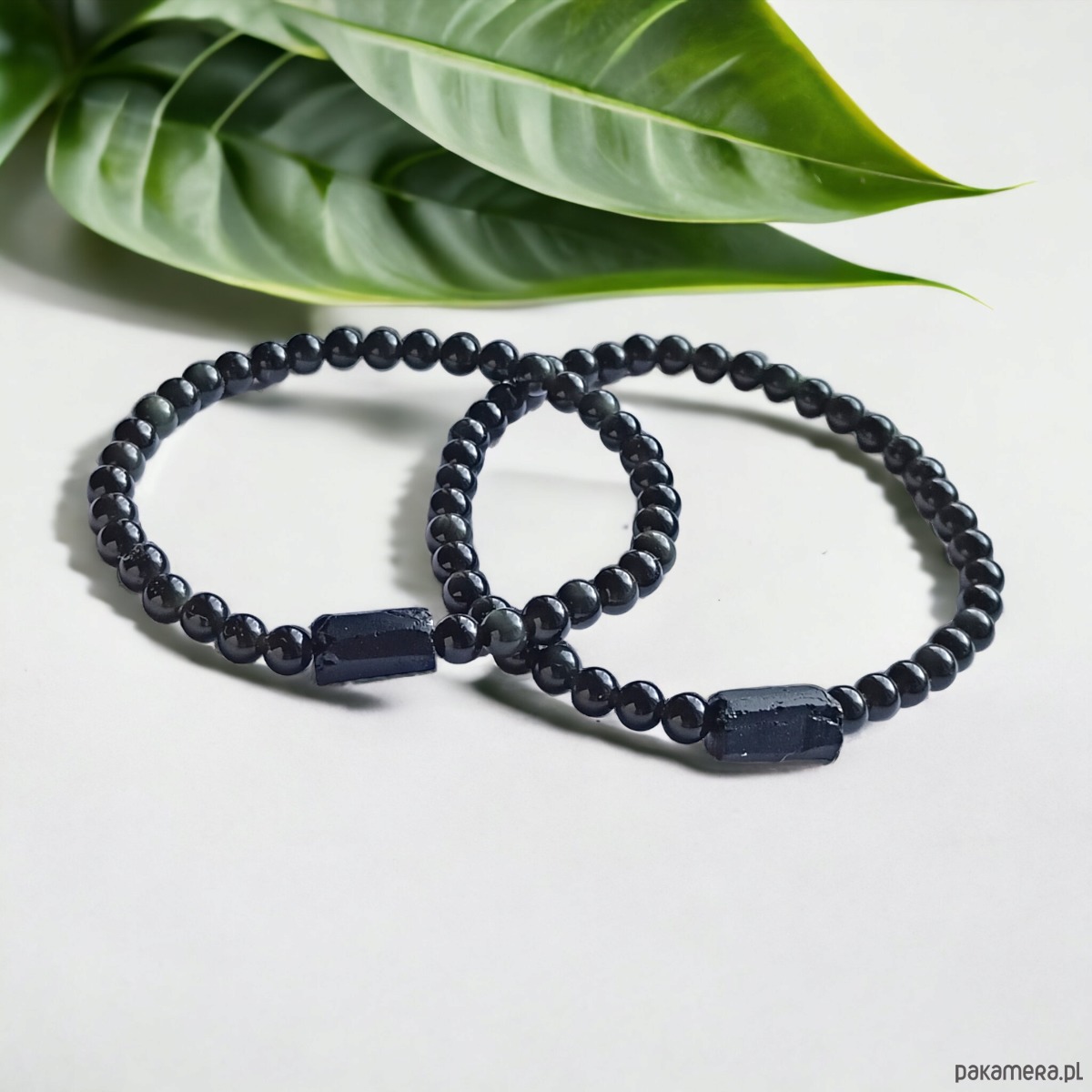 KOMPLET dla PARY : obsydian & turmalin : ochronne bransoletki