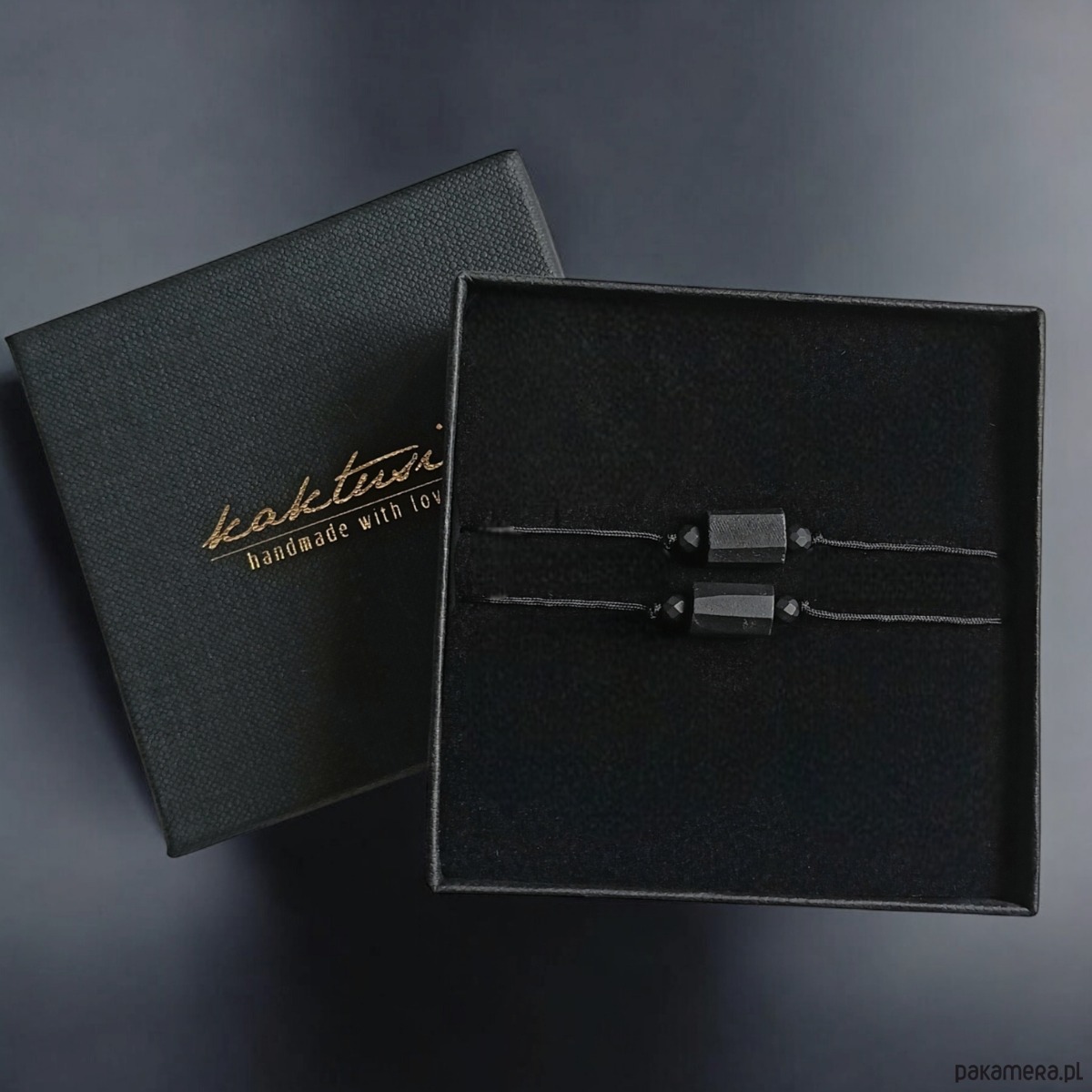 2x minimalistyczna bransoletka ochronna w eleganckim pudełku jubilerskim z logo marki kaktusia.