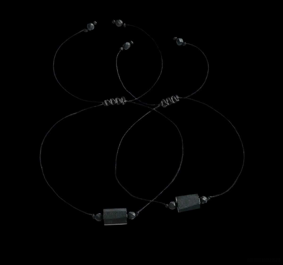 Komplet dla pary : ochronne bransoletki - czarny turmalin : czarny sznurek