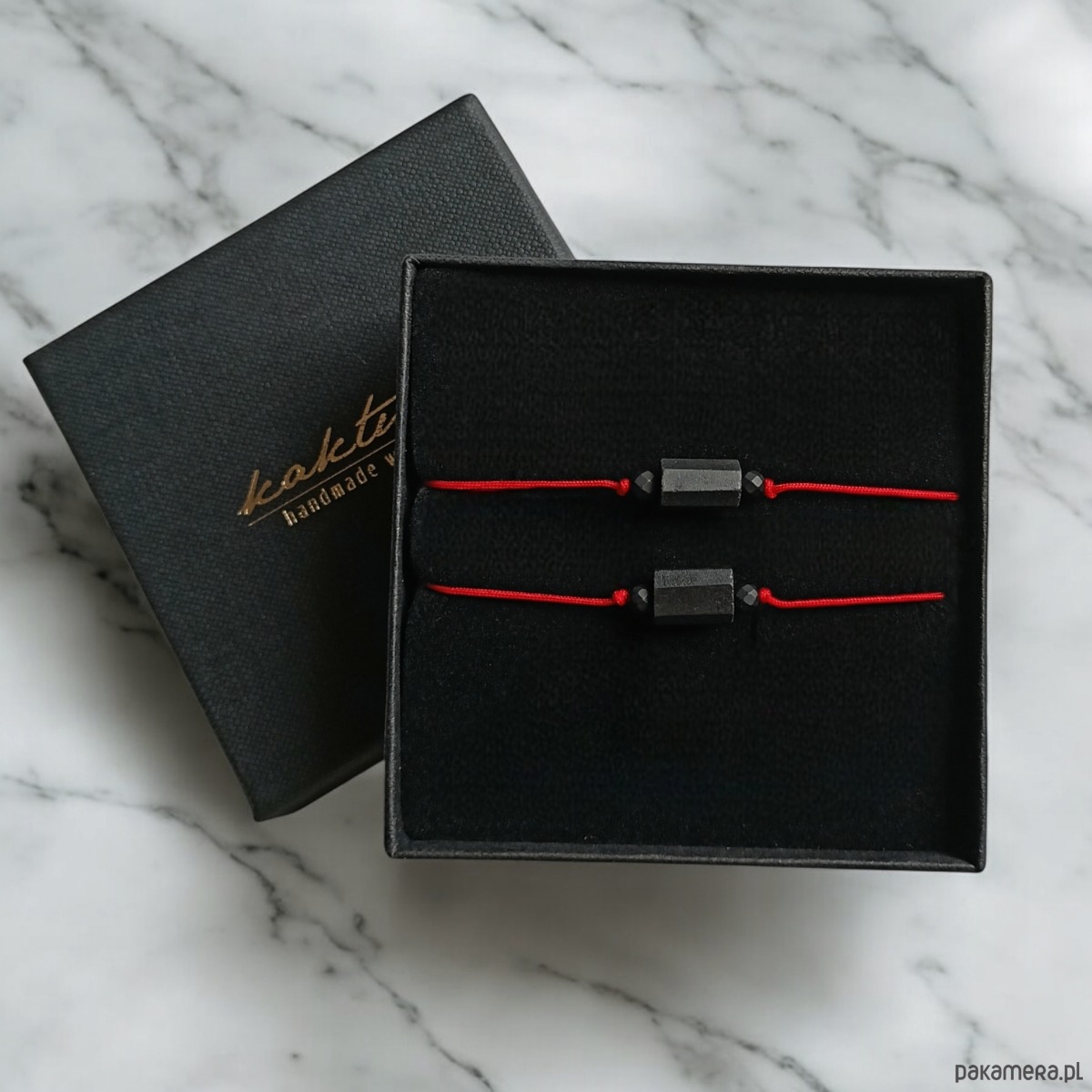 2x minimalistyczna bransoletka ochronna w eleganckim pudełku jubilerskim z logo marki kaktusia.