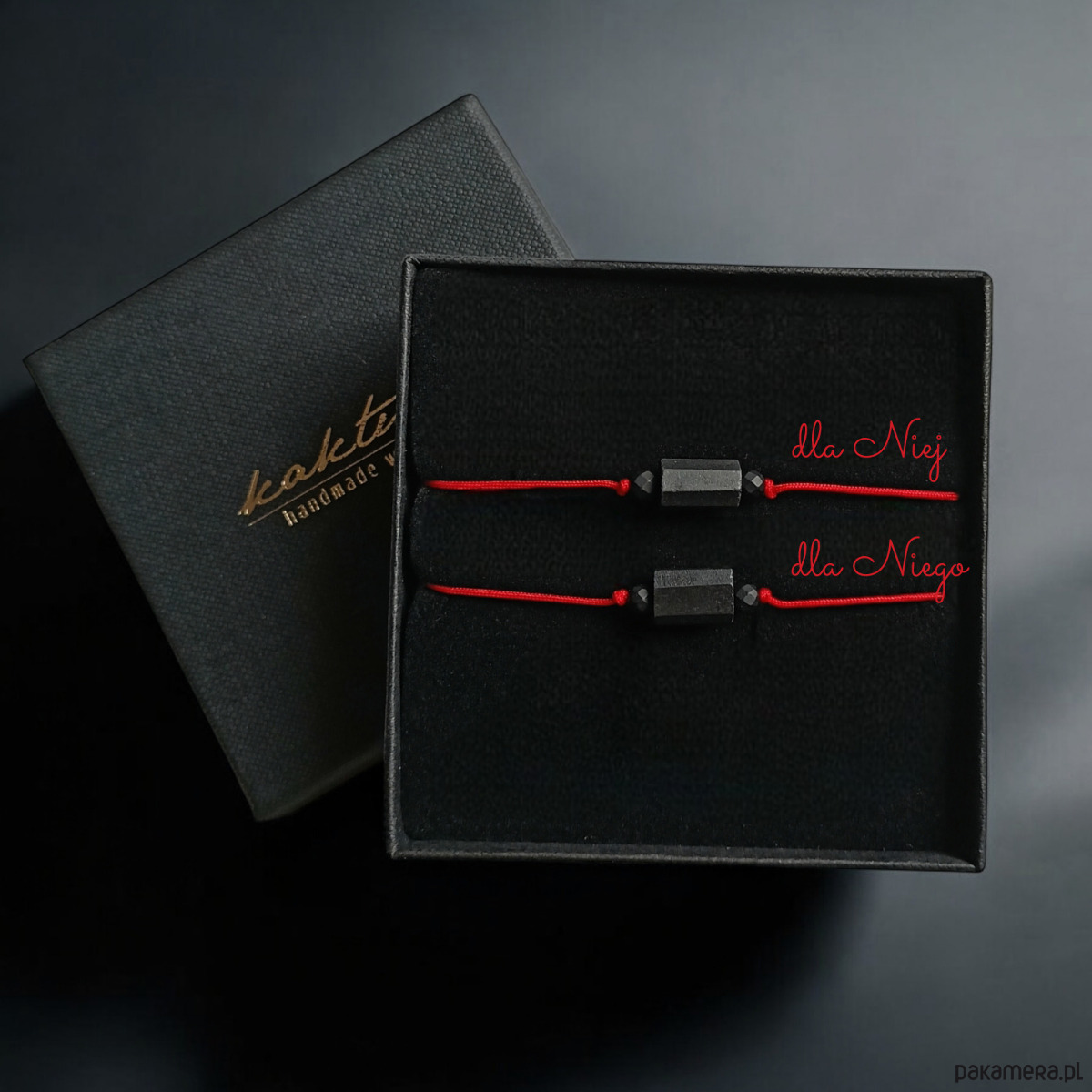 2x minimalistyczna bransoletka ochronna w eleganckim pudełku jubilerskim z logo marki kaktusia.