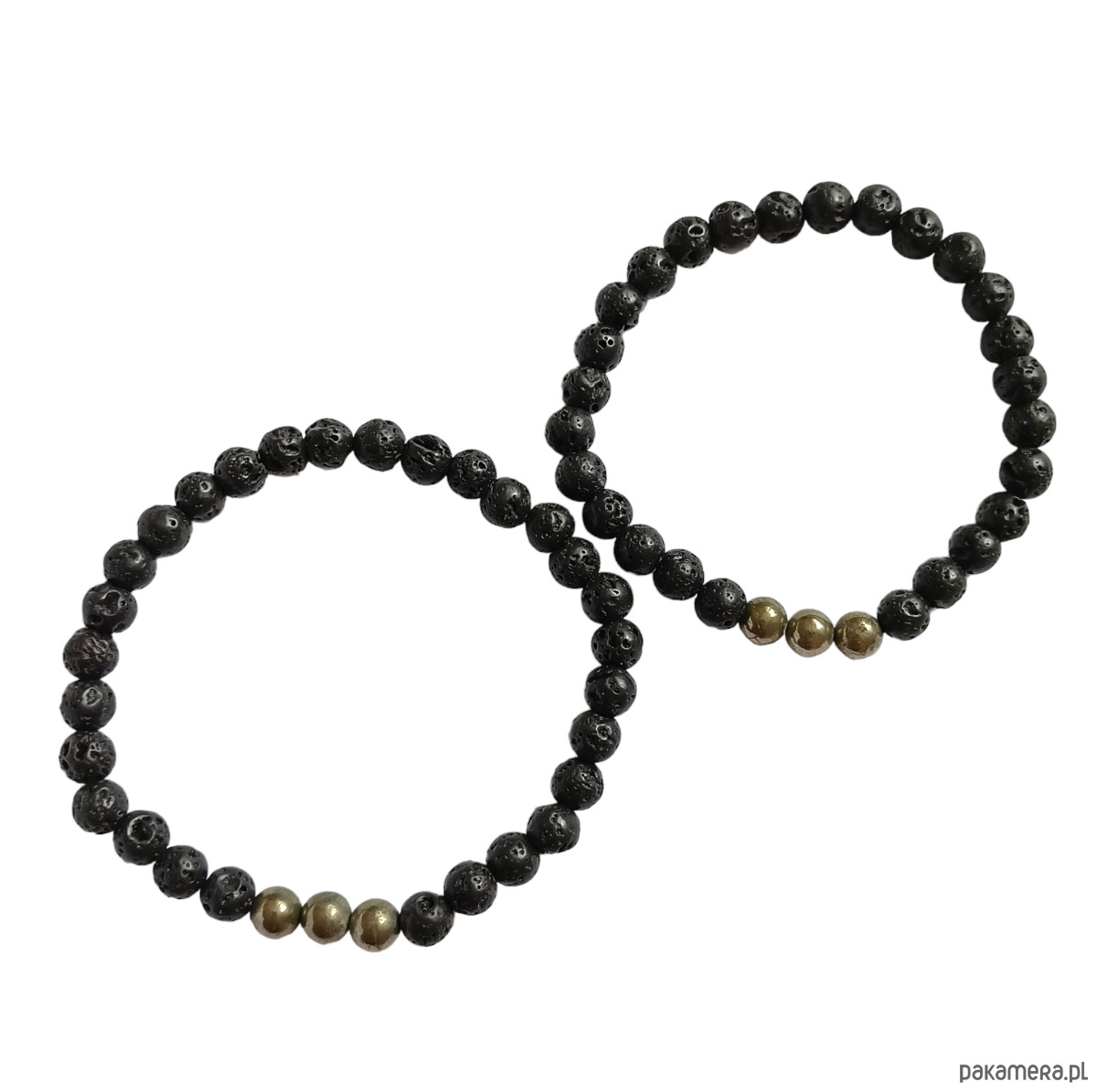 2x delikatna niezwykle ciekawa bransoletka- talizman wykonana z porowatej lawy wulkanicznej i ciemnozłotego pirytu (kuleczki 6mm)