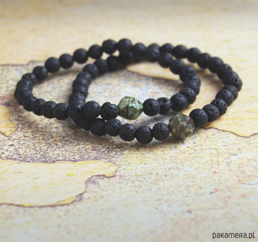 wykonana z porowatej lawy wulkanicznej (kuleczki 6mm) oraz elementu z naturalnego TURKUSU AFRYKAŃSKIEGO (ok.10mm) ...