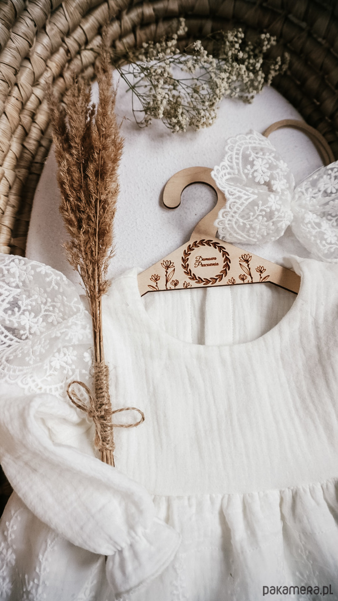 Sukienka z falbankami wykonana została z muślinu bawełnianego.