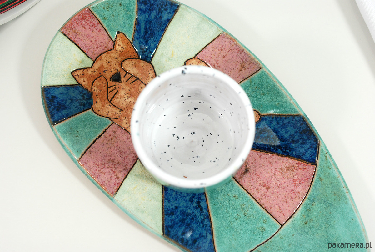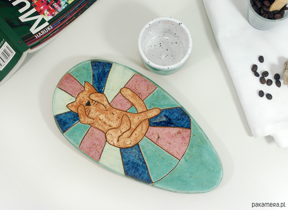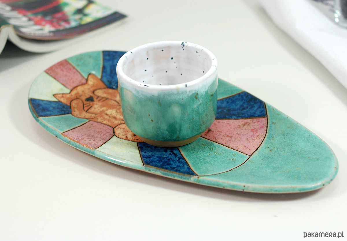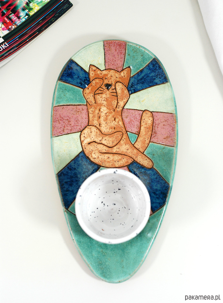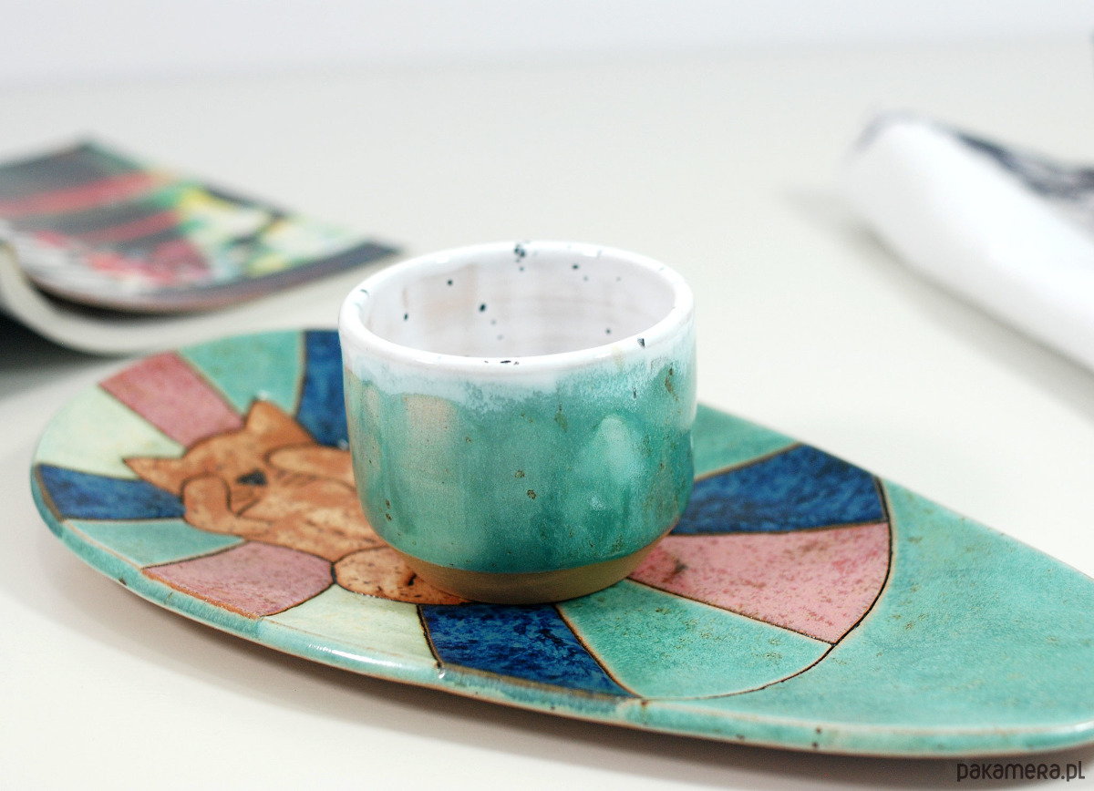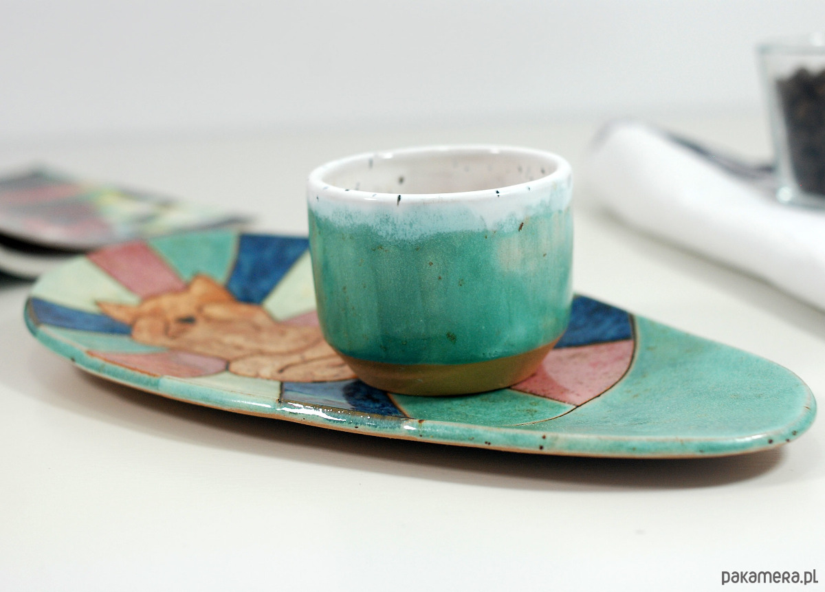 Ręcznie robiony i malowana komplet - ceramiczna czarka i talerzyk - koci sen. Komplet idealnie sprawdzi się do serwowania porannej kawy z mały co nieco :). Będzie również pięknym prezent na urodziny, wizytę u znajomych, parapetówkę i wiele innych okazji nie tylko dla miłośników kotów :)