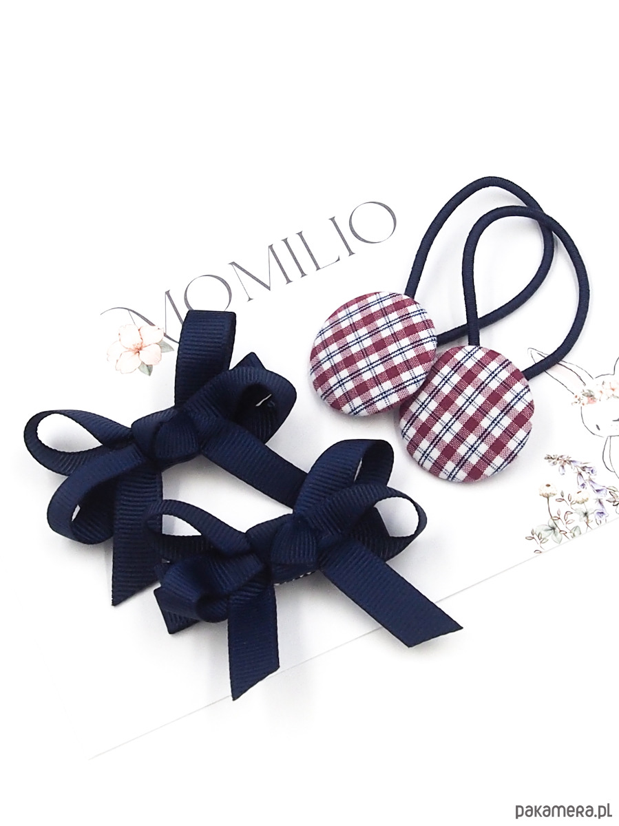 Gumki i dopasowane kolorystycznie spinki kokardki.