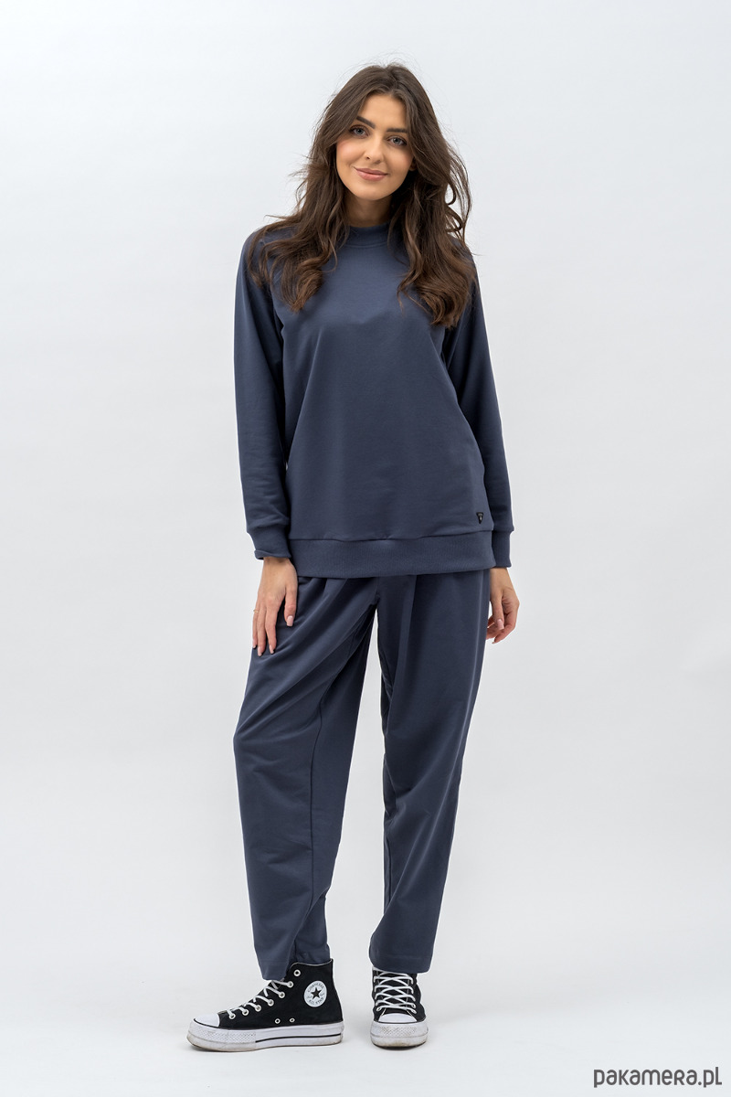 Do spodni zestawiliśmy bluzę z miękkiej, przyjemnej w dotyku dzianiny, krój raglanowy Basic – minimalistyczny, ale pełny charakteru.
