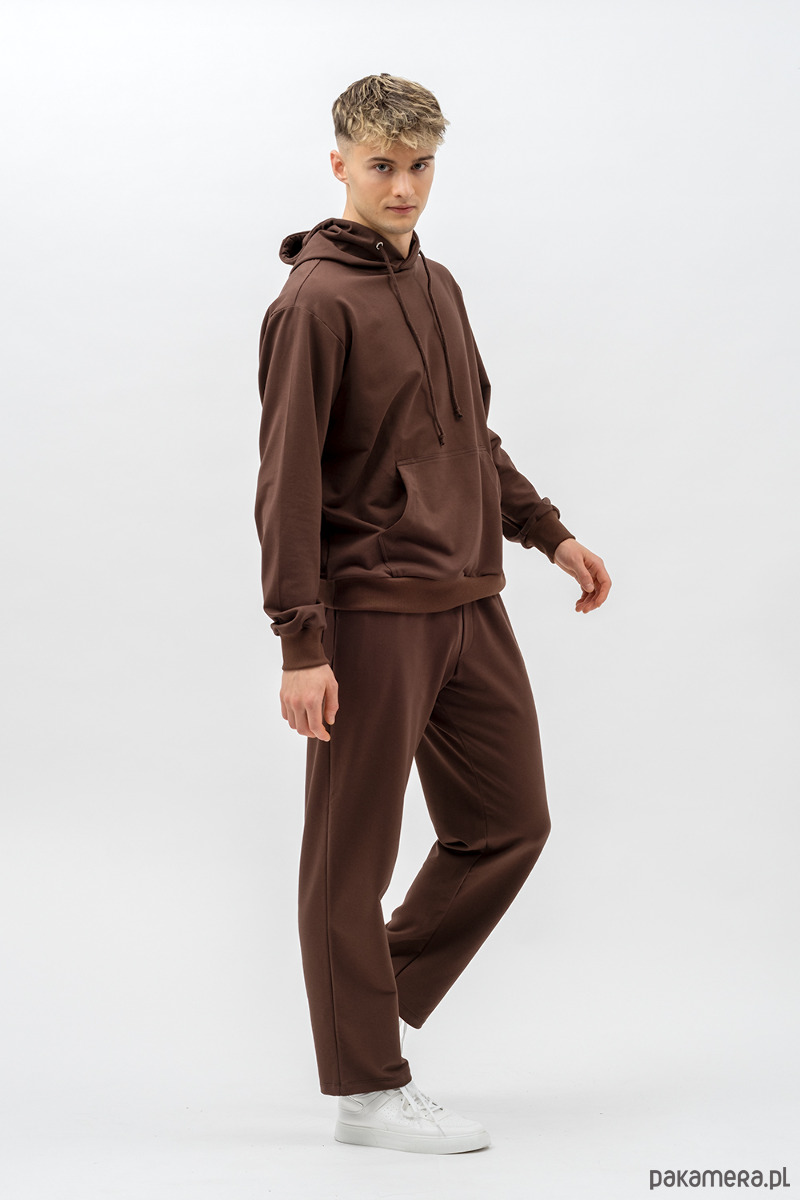 Spodnie mają prostą, klasyczną nogawkę i funkcjonalne kieszenie, dzięki czemu sprawdzą się zarówno na co dzień, jak i w czasie relaksu.