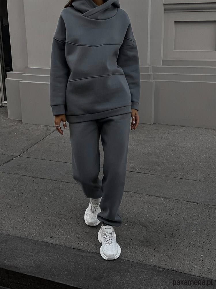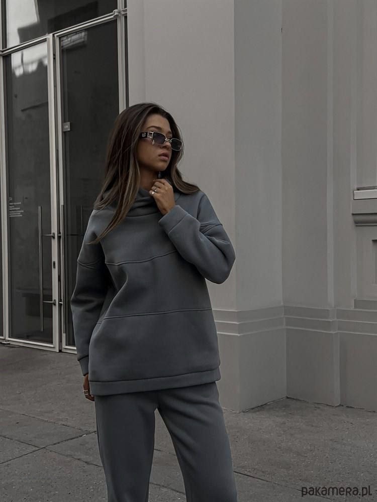 Komplet ocieplany z bluzą z kapturem. Bluza posiada kaptur, spodnie - kieszenie. Komplet wykonany jest z ocieplanego materiału.
