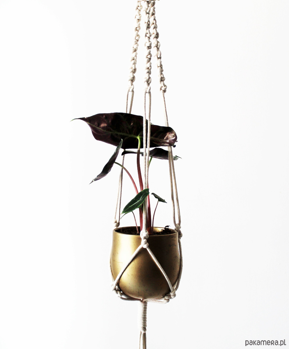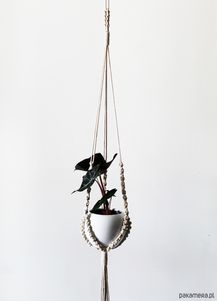 długość całkowita (od góry do końca frędzli, z doniczką w środku): 106 cm