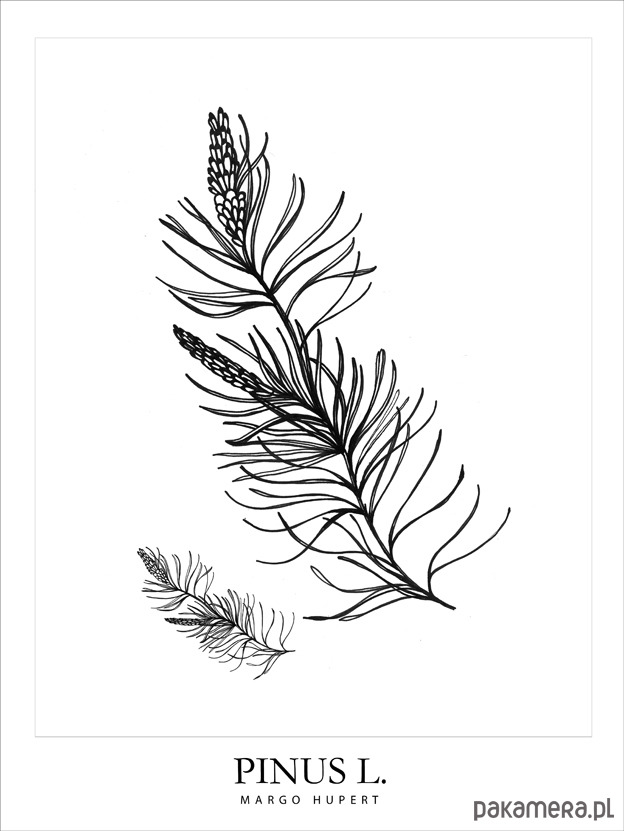Autorski rysunek tuszem - sosna i szyszka.
